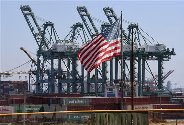 Hàng hóa Trung Quốc chờ bốc dỡ tại cảng Long Beach ở Los Angeles, bang California, Mỹ. (Nguồn: AFP/TTXVN)