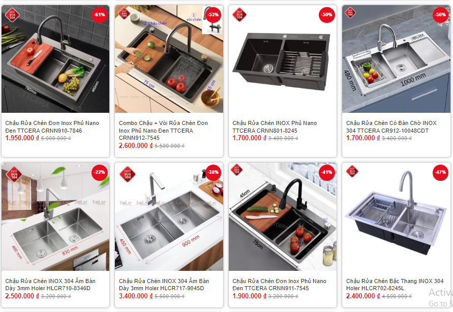 Bạn có thể tìm thấy các mẫu chậu rửa chén từ inox với thiết kế hiện đại và độ bền cao hoặc các mẫu chậu rửa chén từ đá với tính thẩm mỹ hàng đầu để mang lại sự sang trọng cho không gian bếp. Ngoài ra, các mẫu chậu rửa nano cũng là lựa chọn lý tưởng với khả năng kháng khuẩn, kháng nhiệt và chống bám bẩn tốt…