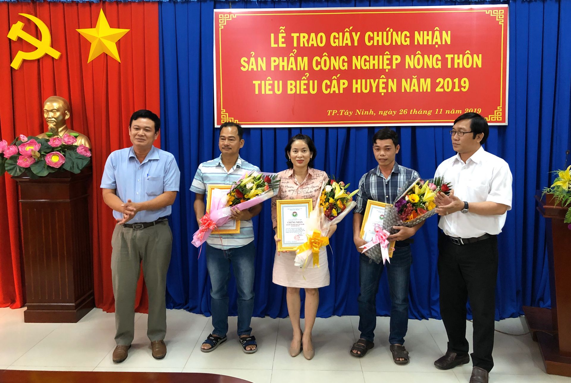 Tại buổi lễ, có 3 sản phẩm được UBND thành phố công nhận sản phẩm công nghiệp nông thôn tiêu biểu năm 2019, gồm: sản phẩm Yến sào sơ chế Yến Loan của Công ty TNHH Loan Phát Huy (khu phố 2, phường 3); sản phẩm Cà phê G20 “G20COFFEE” của Công ty TNHH Đầu tư Phát triển Thiên Sa chi nhánh Tây Ninh (khu phố Hiệp Lễ, phường Hiệp Ninh) và sản phẩm Bánh pía Quảng Hải của hộ kinh doanh Quảng Hải (khu phố 2, phường 2).