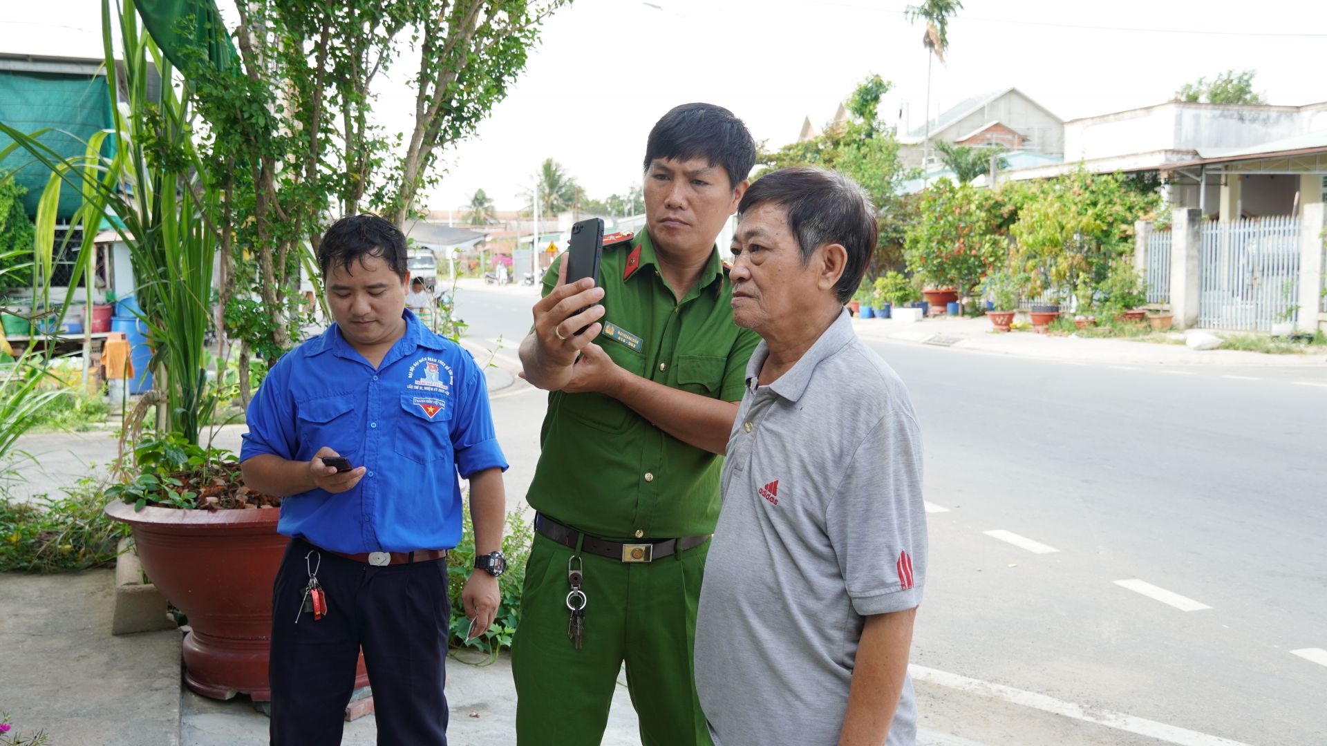 Cảnh sát khu vực đến tận nhà hướng dẫn cài đặt định danh điện tử mức 1 cho người dân.