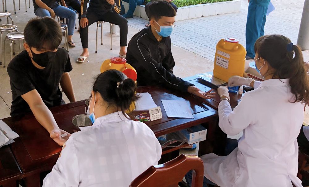 Lấy mẫu máu xét nghiệm HIV đối với công dân trúng tuyển nghĩa vụ quân sự và tham gia Công an nhân dân năm 2021.
