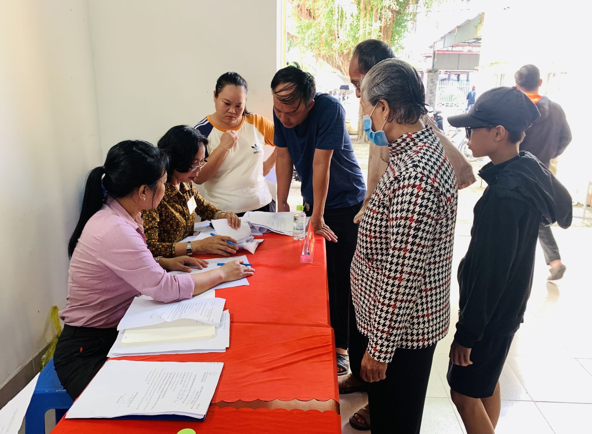Cử tri đến bàn hướng dẫn nhận phiếu bầu cử.