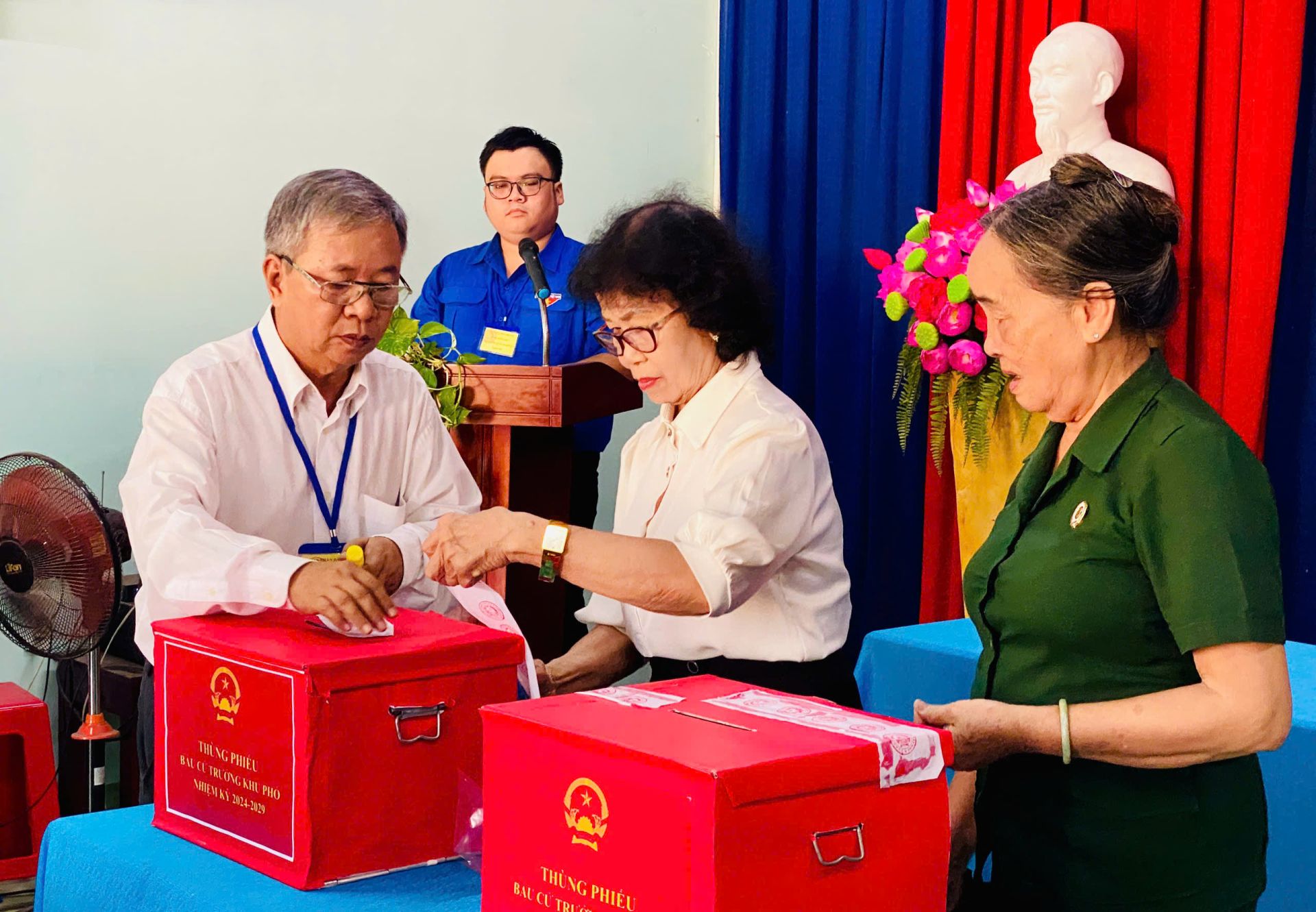 Sau nghi lễ chào cờ khai mạc buổi lễ, tổ bầu cử thông qua thể lệ bầu cử, nội quy phòng bỏ phiếu và mời 2 đại diện cử tri lên kiểm tra, niêm phong thùng phiếu. Sau đó, lần lượt các cử tri trên địa bàn các ấp, khu phố bỏ phiếu bầu đúng, bầu đủ, thể hiện, quyền, trách nhiệm, nghĩa vụ của công dân đối với Đảng và Nhà nước.