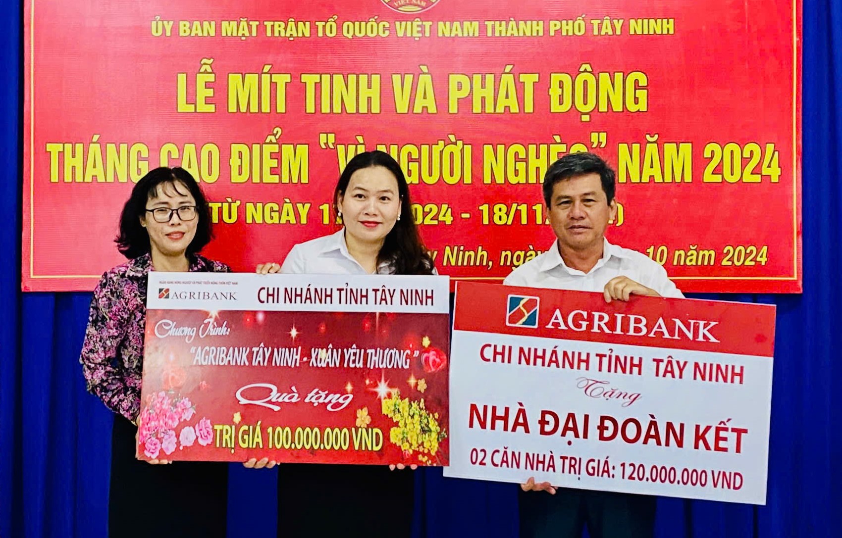 Tháng cao điểm “Vì người nghèo” năm 2024 của Thành phố diễn ra từ ngày 17.10 đến 18.11 với mục tiêu đẩy mạnh công tác tuyên truyền, vận động các tầng lớp nhân dân nâng cao nhận thức, hành động, tích cực tham gia hưởng ứng phong trào thi đua “Thành phố Tây Ninh chung tay vì ngưòi nghèo – Không để ai bị bỏ lại phía sau” và phong trào “Chung tay xóa nhà tạm, nhà dột nát trên địa bàn thành phố Tây Ninh trong năm 2025”; lập thành tích chào mừng kỷ niệm 94 năm Ngày truyền thống MTTQ Việt Nam (18/11/1930-18/11/2024) và Ngày hội Đại đoàn kết toàn dân tộc.