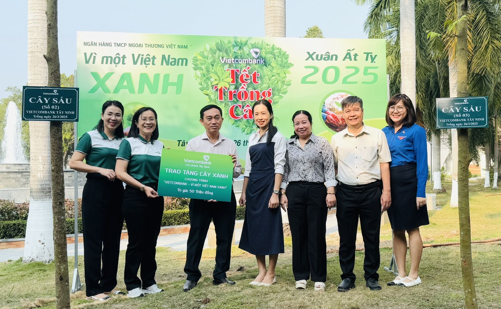 Đồng thời, đại diện Vietcombank Tây Ninh trao biểu trưng tặng cây xanh chương trình “Vietcombank - Vì một Việt Nam xanh” cho UBND Thành phố với tổng trị giá 50 triệu đồng, do Vietcombank Tây Ninh tài trợ.
