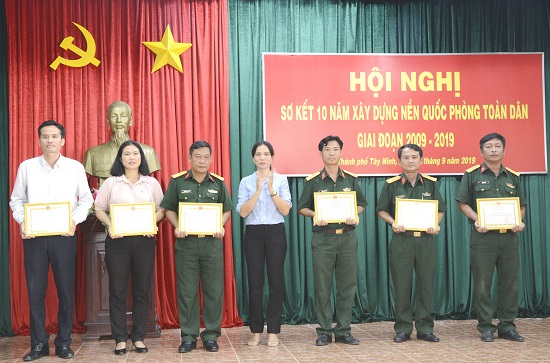 Nhân dịp này, UBND thành phố Tây Ninh khen thưởng 10 tập thể, 15 cá nhân đạt thành tích xuất sắc trong 10 năm xây dựng nền QPTD giai đoạn 2009-2019.