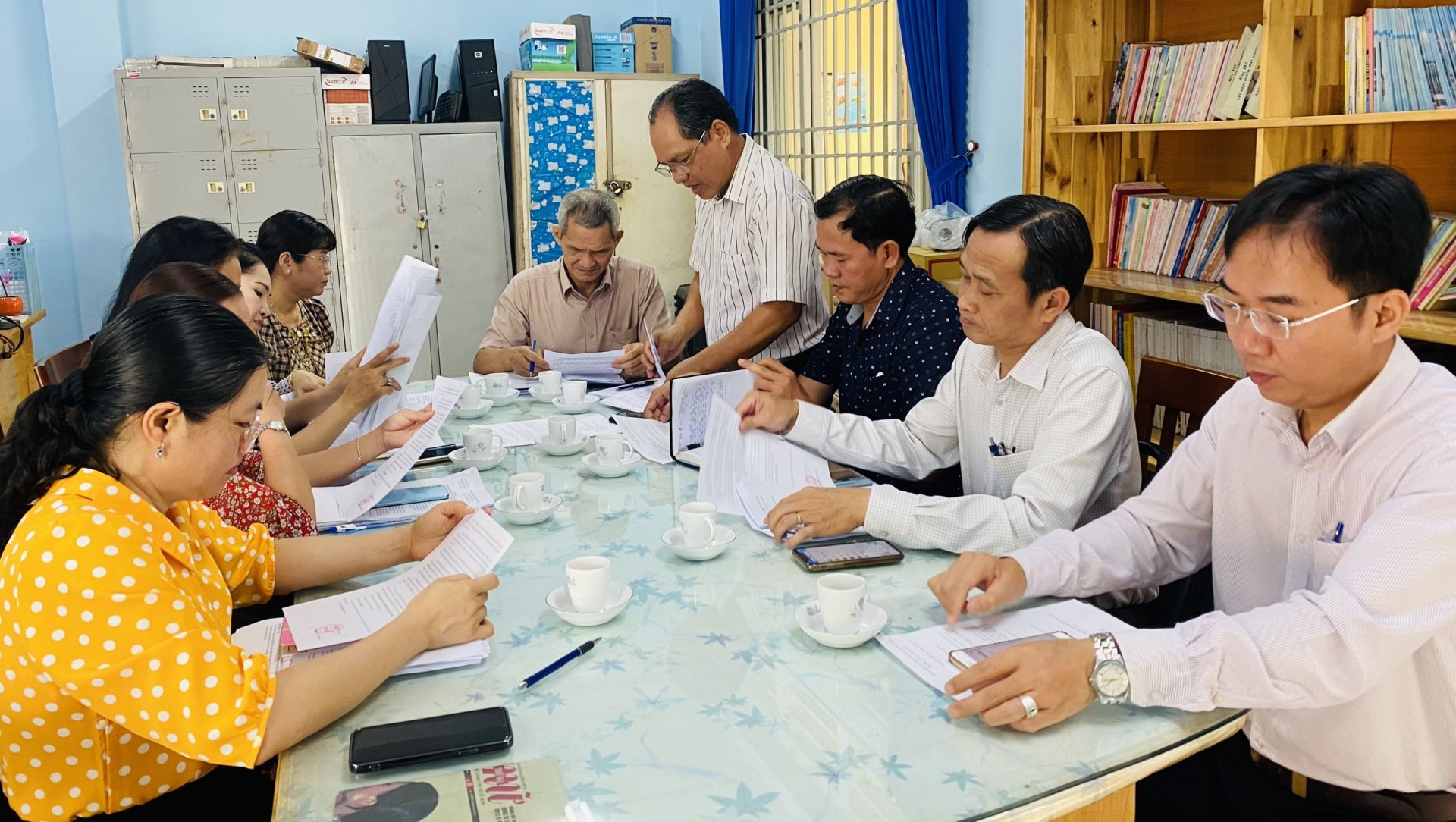 Tại buổi làm việc, các thành viên trong đoàn cùng Ban Giám hiệu nhà trường trao đổi, làm rõ một số khó khăn và đề ra các giải pháp nhằm đẩy mạnh công tác vận động xã hội hoá. Qua đó góp phần huy động sức mạnh tổng hợp của các tổ chức, cá nhân và nhân dân cùng nhà trường thực hiện tốt công tác giáo dục của địa phương.