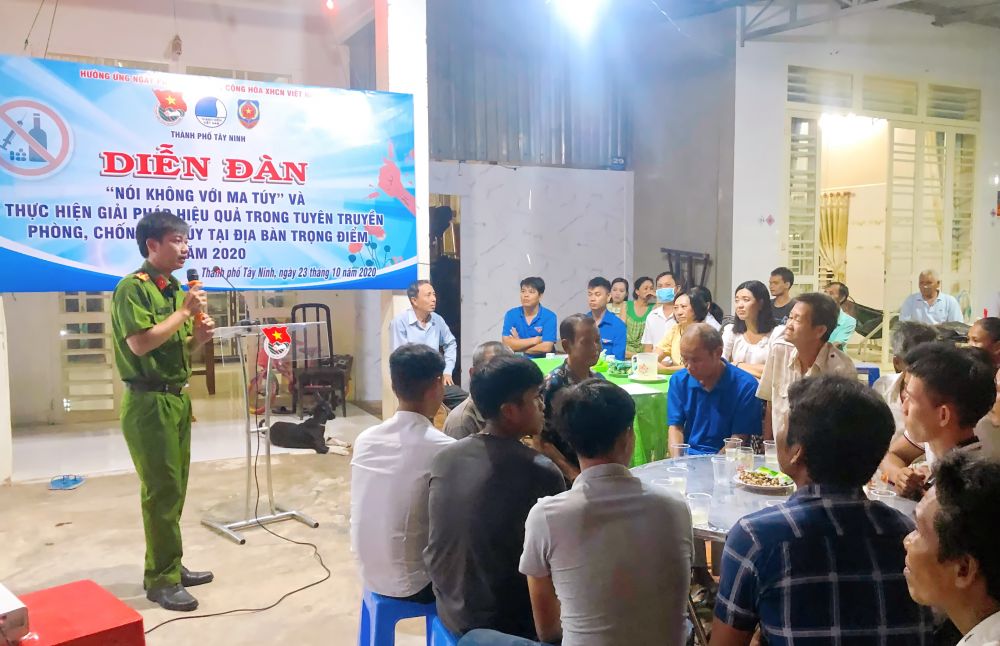 Tại buổi tuyên truyền, cán bộ Đội Cảnh sát điều tra tội phạm về ma túy Công an Thành phố Tây Ninh và Sở Tư pháp thông tin về tình hình người nghiện ma túy trên địa bàn; những kiến thức cơ bản về các loại ma túy phổ biến, dấu hiệu nhận biết người nghiện ma túy, tác hại của ma túy đối với sức khỏe cùng những hệ lụy đối với gia đình, xã hội; quy định pháp luật về phòng, chống ma túy, tệ nạn xã hội…