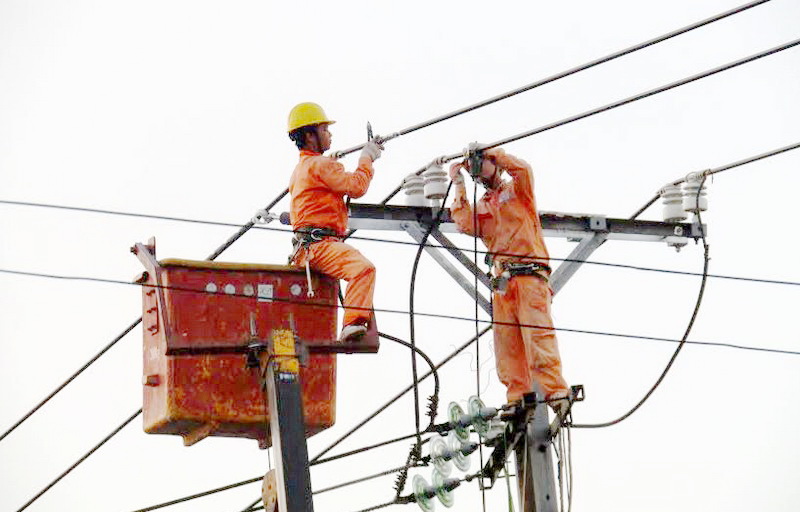 Công nhân Công ty Điện lực Tây Ninh sửa chữa đường dây điện- Ảnh minh hoạ Thuý Hằng.