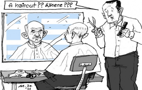 Sáng hôm sau, một tá luật sư chờ trước cửa nhà bác thợ cạo chờ cắt tóc.