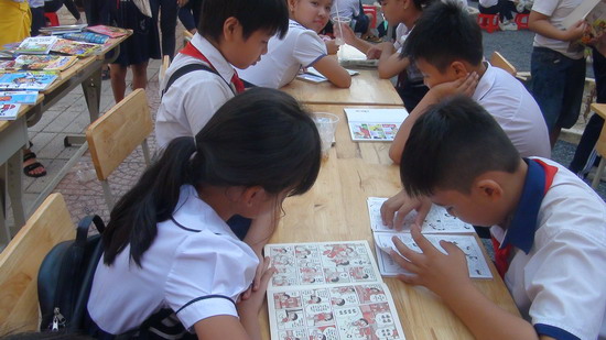 Các em nhỏ say mê đọc sách, truyện