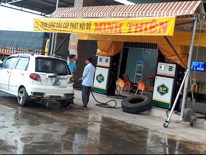 Chiều ngày 25.5, có một xe ô tô con qua đường ghé vào trạm cấp phát xăng dầu nội bộ Công ty Minh Thiên để mua xăng. Một nam nhân viên ở trạm nhanh nhảu bước ra bơm xăng vào thùng chứa xăng của xe ô tô. Qua chuyện trò, nhân viên này cho biết: “Cây xăng này chỉ đổ cho xe tải của công ty thôi, không đăng ký bán ra ngoài. Nếu cơ quan chức năng bắt gặp, sẽ bị phạt”. Điều này cho thấy, nhân viên ở đây ý thức được trạm chỉ cung cấp nhiên liệu cho xe của Công ty Minh Thiên và việc bán xăng dầu cho xe ngoài là vi phạm pháp luật.