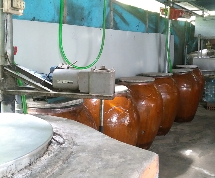 Quy trình nấu rượu tại cơ sở sản xuất rượu đế nhãn hiệu Bà Đen tại phường 3, TP Tây Ninh.
