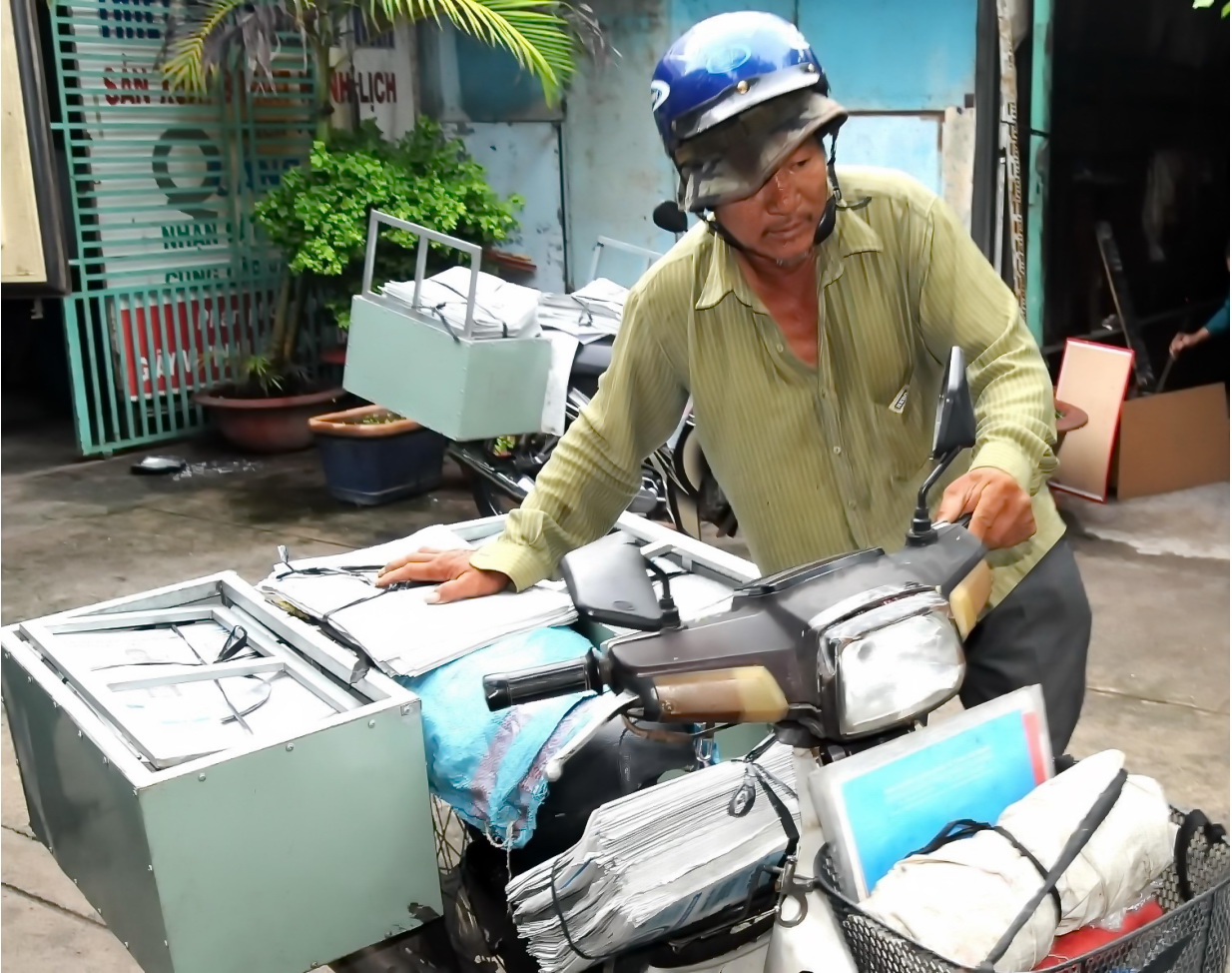 Nhân viên giao báo đến xã Tân Hà, huyện Tân Châu.