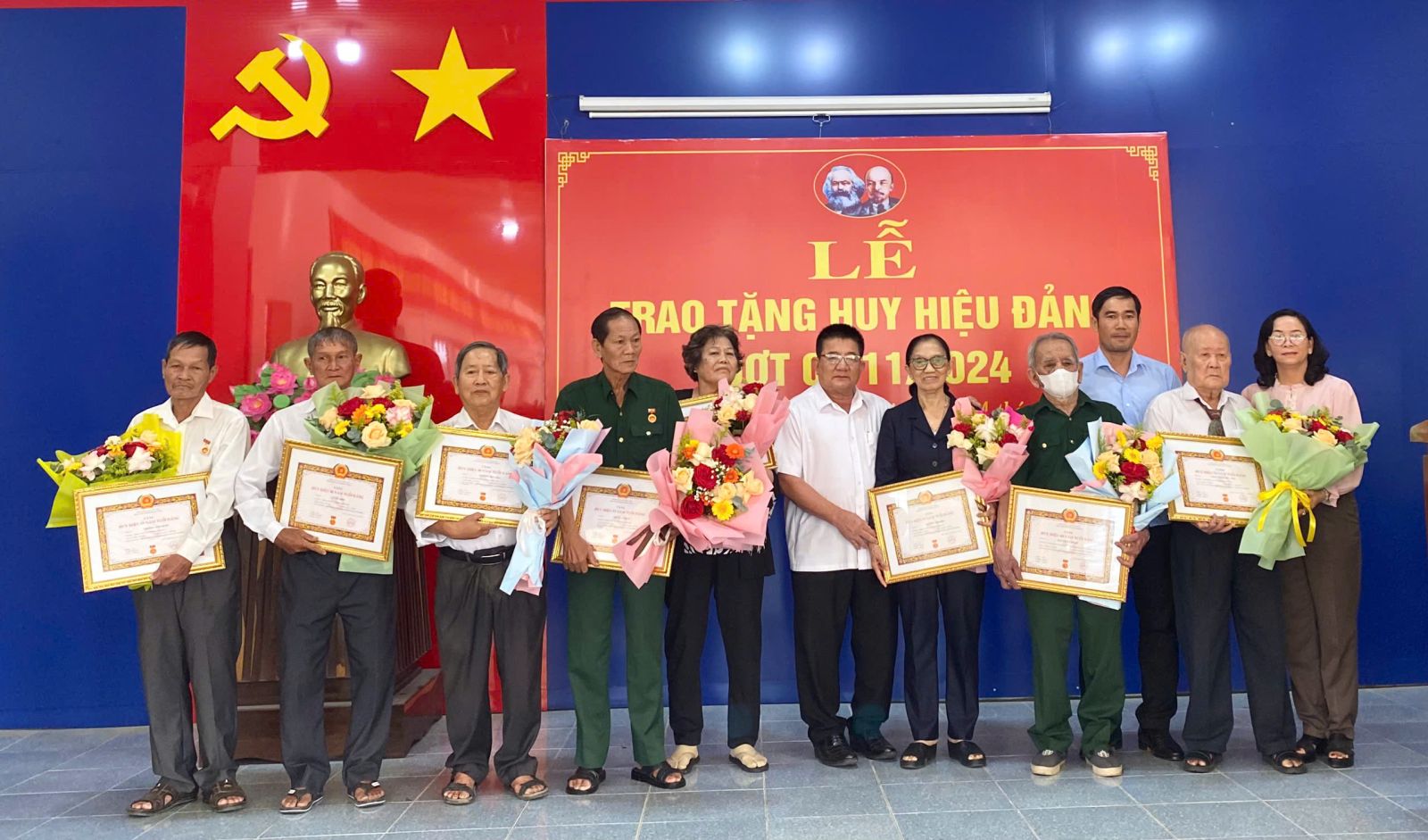 4 huy hiệu 40 năm tuổi Đảng được trao cho Đảng viên Nguyễn Duy Hòa, sinh năm 1954, sinh hoạt tại chi bộ khu phố An Bình; Lê Văn Biểu, sinh năm 1950, sinh hoạt tại chi bộ khu phố An Đước; Trịnh Thị Nhiễn, sinh năm 1960, sinh hoạt tại chi bộ khu phố Lộc Khê; Bùi Thị Thẻ, sinh năm 1952, sinh hoạt tại chi bộ khu phố Gia Tân, phường Gia Lộc.