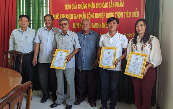 UBND huyện Trảng Bàng vừa tổ chức lễ trao giấy chứng nhận cho các sản phẩm được bình chọn là sản phẩm công nghiệp nông thôn tiêu biểu của huyện năm 2019.