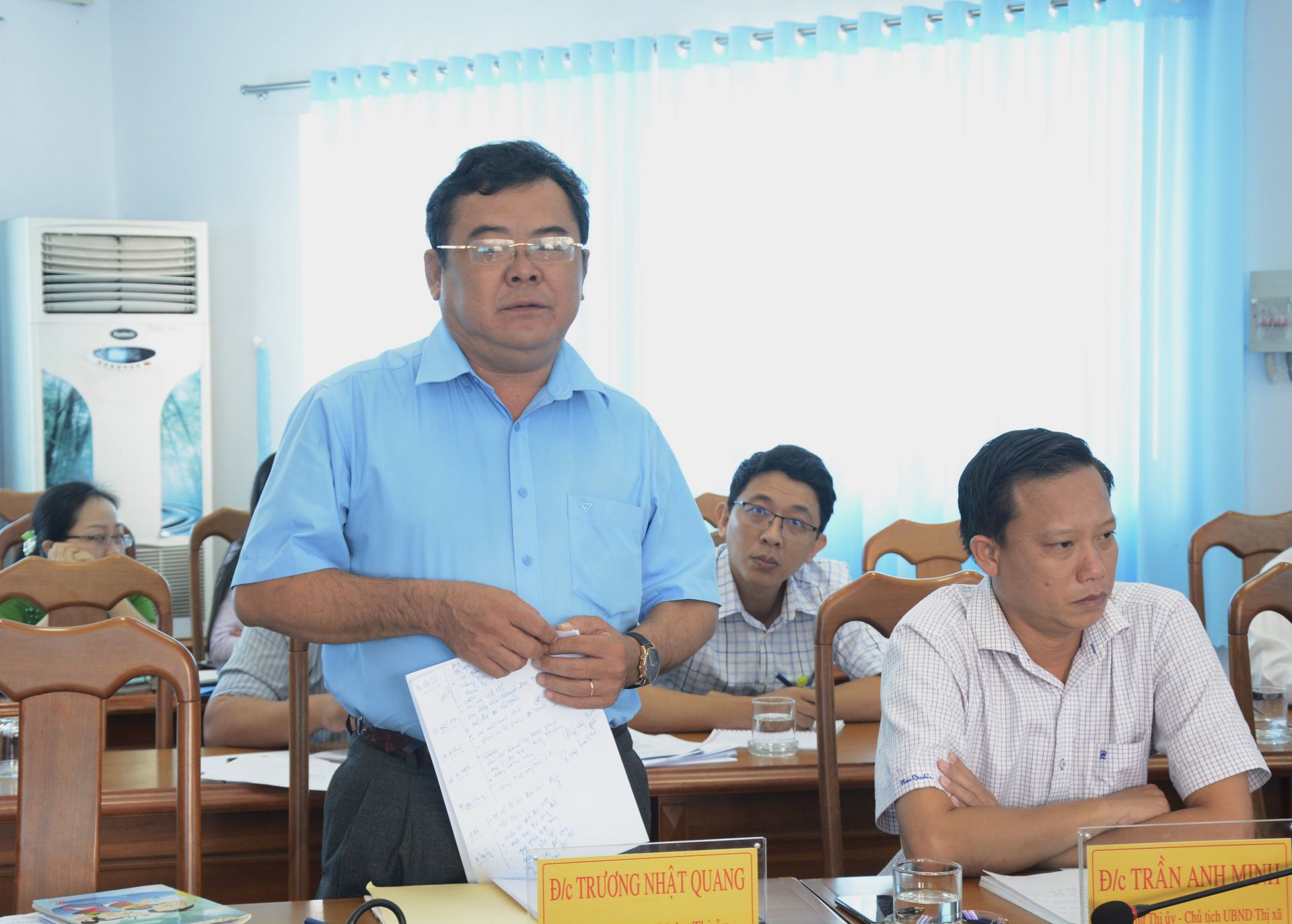 Ông Trương Nhật Quang–Bí thư Thị uỷ Trảng Bàng phát biểu tại buổi làm việc.