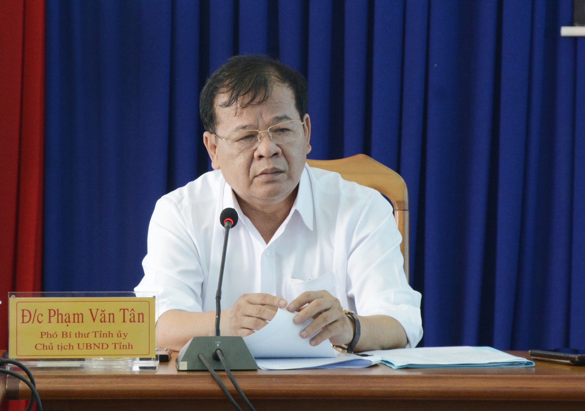 Chủ tịch UBND tỉnh Phạm Văn Tân phát biểu tại buổi làm việc.