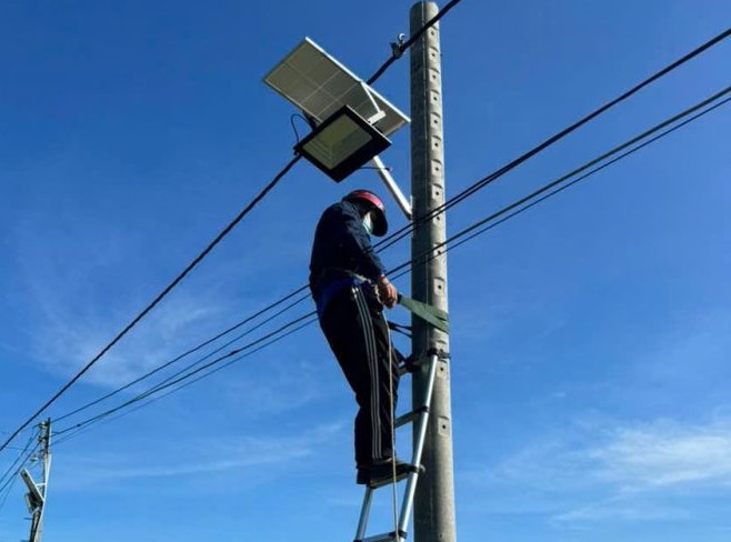 Các bóng đèn chiếu sáng bằng năng lượng mặt trời được lắp trên các trụ điện có sẵn dọc theo tuyến đường trên địa bàn phường An Tịnh.
