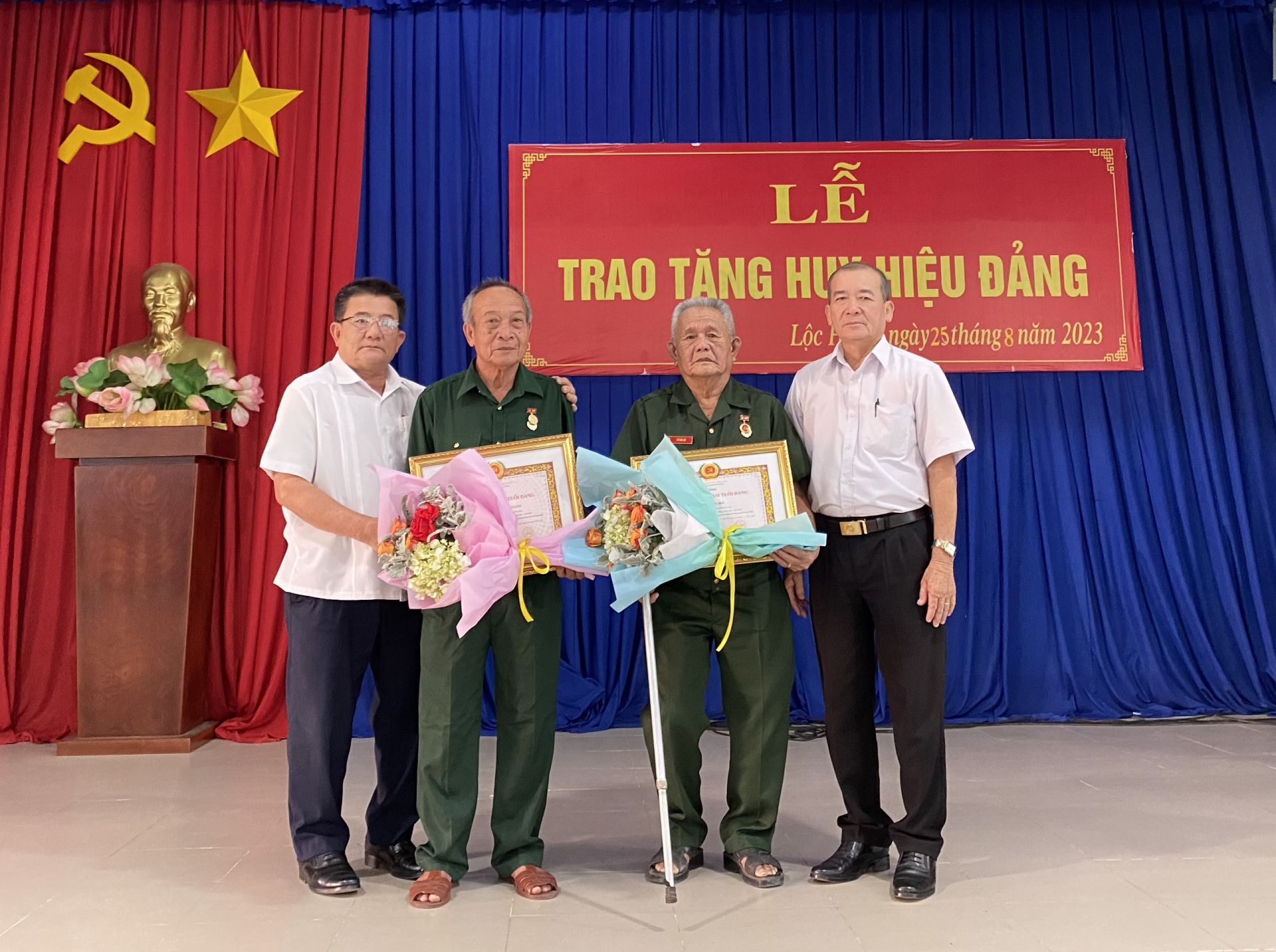 Huy hiệu 60 năm tuổi Đảng được trao cho đảng viên Hồ Văn Đổi, sinh năm 1940; Huy hiệu 50 năm tuổi Đảng trao cho đảng viên Lương Văn Giấy, sinh năm 1952. Hai đảng viên cùng sinh hoạt tại Chi bộ khu phố Lộc Tân.
