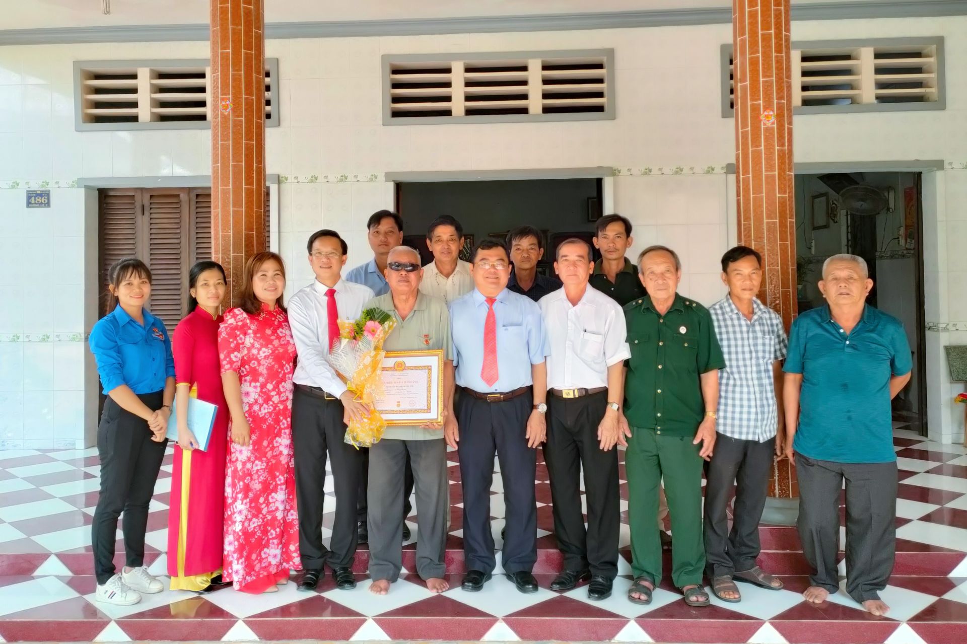 Huy hiệu 45 tuổi Đảng được trao cho đảng viên Nguyễn Văn Nùng (sinh năm 1952), nguyên Trưởng Đài Truyền thanh huyện Trảng Bàng (nay là thị xã Trảng Bàng), hiện sinh hoạt tại Chi bộ khu phố Lộc Vĩnh.
