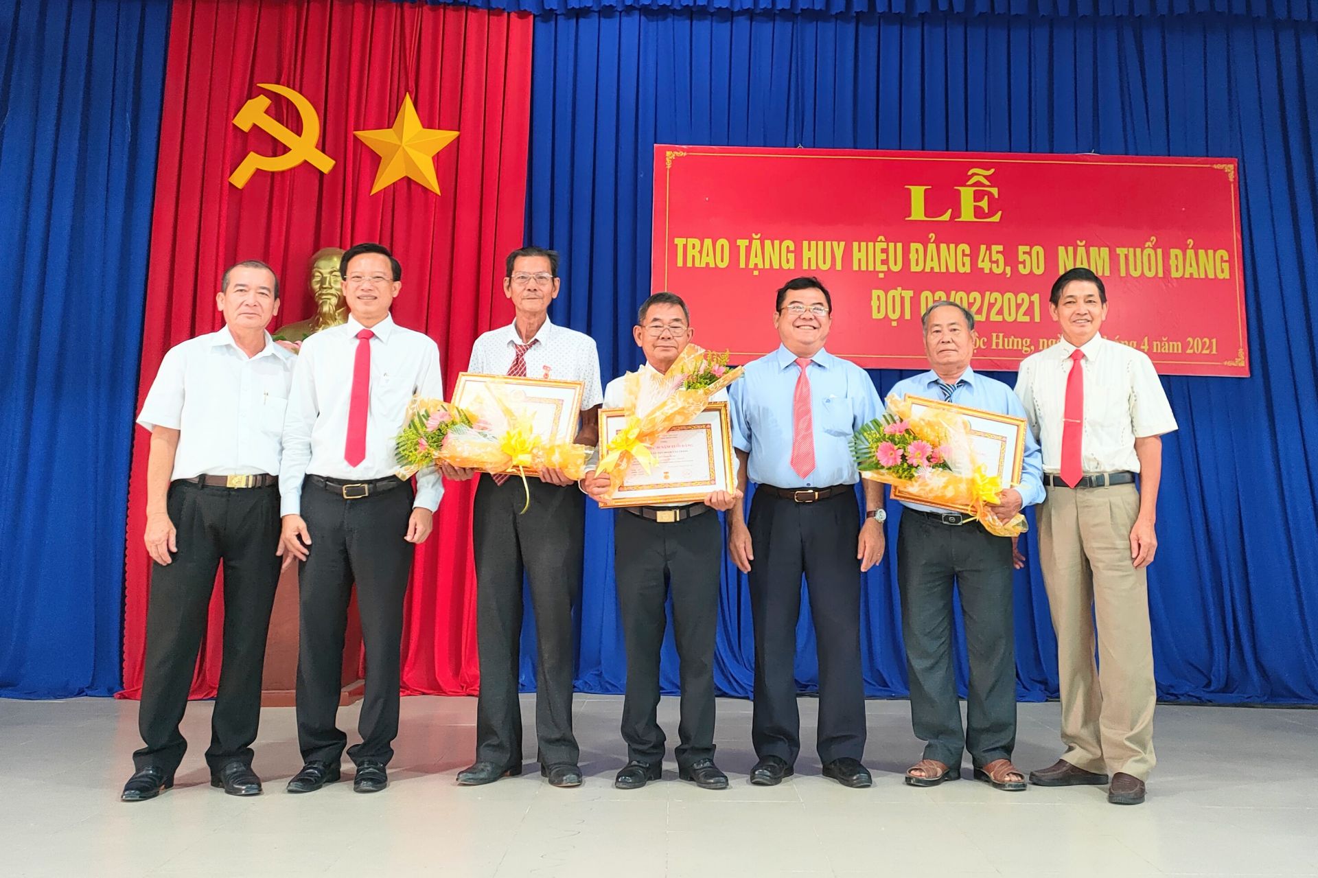 Huy hiệu 50 tuổi Đảng trao cho các đảng viên: Hà Minh Quân (sinh năm 1953), nguyên Phó Trưởng Ban Quản lý Khu công nghiệp Tây Ninh, hiện sinh hoạt tại Chi bộ khu phố Lộc Chánh; đảng viên Đinh Văn Tấn (sinh năm 1950), nguyên Trưởng Phòng Văn hóa - Thể dục và Thể thao huyện Trảng Bàng (nay là thị xã Trảng Bàng), hiện sinh hoạt tại Chi bộ khu phố Lộc An.