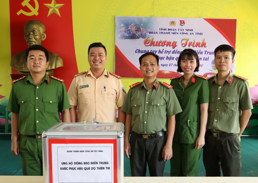 Đoàn viên thanh niên CATN ủng hộ đồng bào lũ lụt.