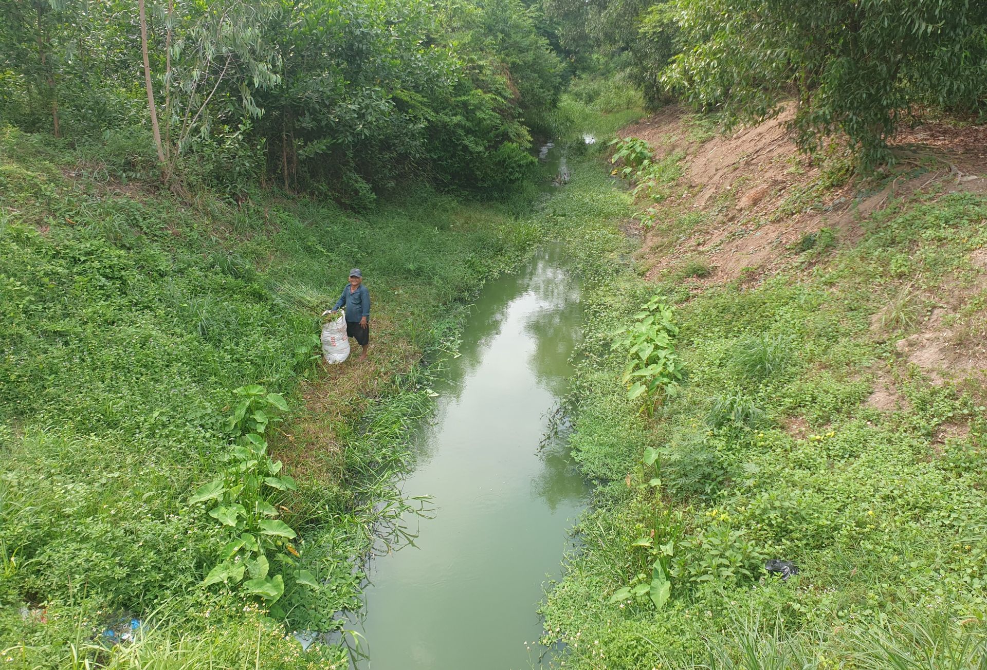 Người dẫn đường đưa chúng tôi đến hai trang trại heo nằm bên bờ kênh tiêu phía sau cống phụ, chỉ xuống nguồn nước dưới kênh hôi thối và cho biết thêm: Dù con kênh tiêu sau cống phụ bắt nguồn từ khu vực phía trên, có nhiều chất thải đổ vào nhưng nước kênh không thể có mùi hôi thối. Khả năng hai trại heo xả nước thải ra kênh là không tránh khỏi.