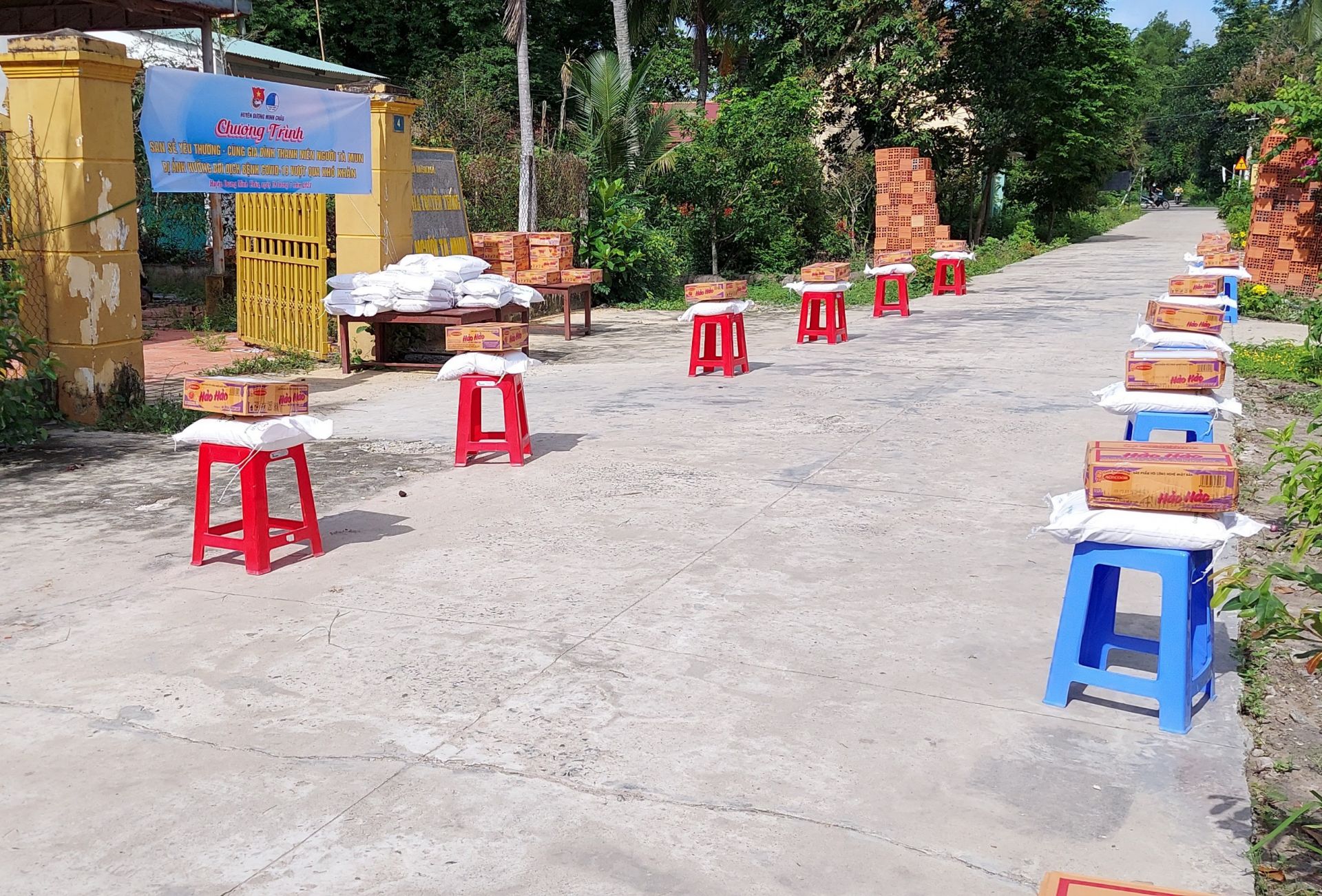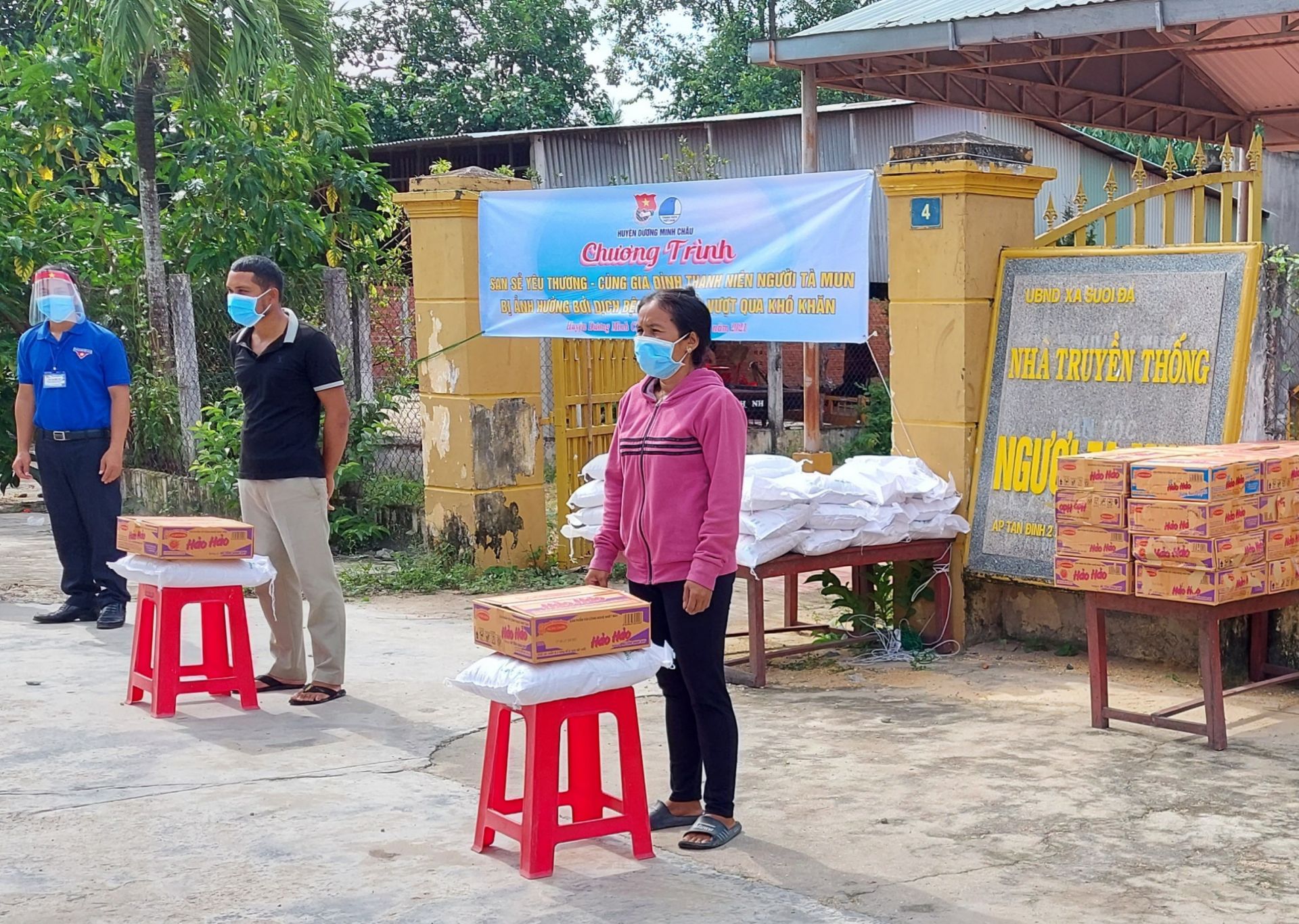 Huyện đoàn trao 100 phần quà, mỗi phần có 10 kg gạo và 1 thùng mì gói cho các gia đình thanh niên tộc người Tà Mun có hoàn cảnh khó khăn, bị ảnh hưởng dịch Covid- 19. Tổng giá trị các phần quà được hỗ trợ gần 30 triệu đồng.