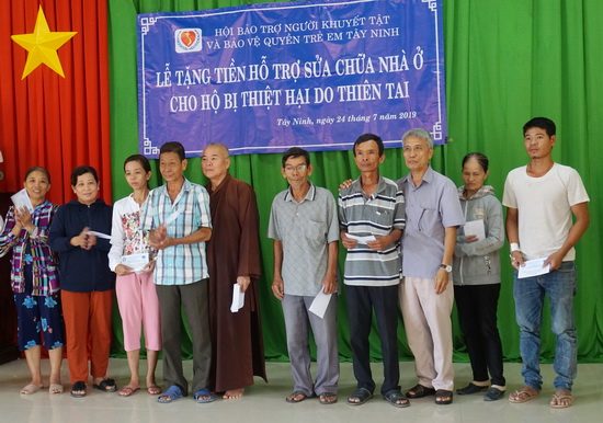 Tại xã Tân Phú (huyện Tân Châu), Hội cũng trao tiền hỗ trợ sửa chữa nhà cho các gia đình bị thiệt hại do lốc xoáy hồi cuối tháng 6 vừa qua. Mỗi suất hỗ trợ trị giá 2 triệu đồng đã được trao cho 30 hộ thuộc 4 xã Thạnh Đông, Tân Phú, Tân Hòa, Suôi Dây.