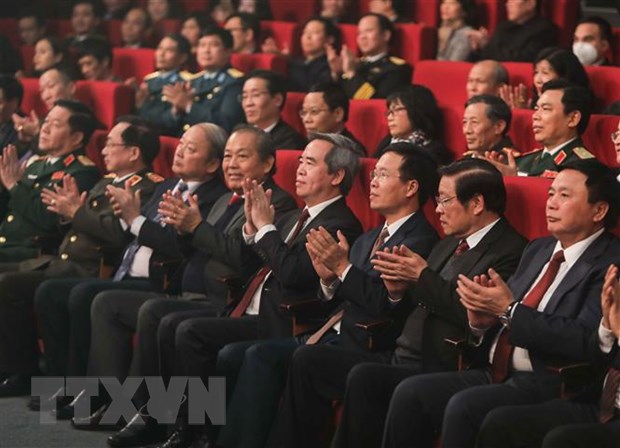 Các lãnh đạo Đảng, Nhà nước dự chương trình. (Ảnh: Thanh Tùng/TTXVN)