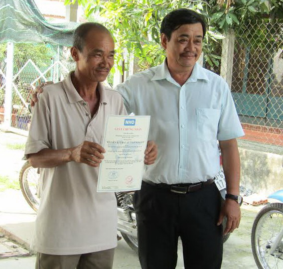 | Ông Lâm Văn Tính- Phó Chi cục trưởng Chi cục Trồng trọt và bảo vệ thực vật trao giấy chứng nhận VietGAP cho đại diện Tổ liên kết rau an toàn Ninh Sơn. |