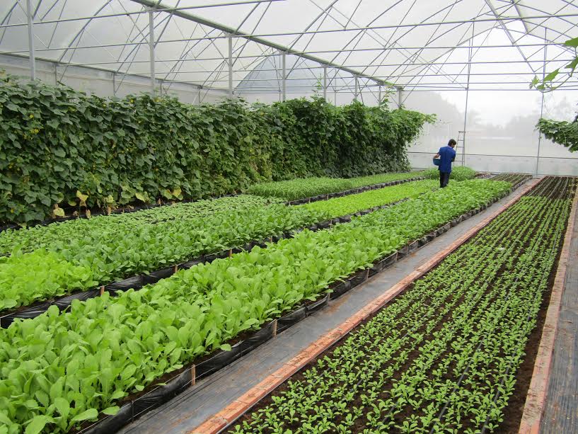 Mô hình trồng rau trong nhà màng của Công ty TNHH Sản xuất cao su Liên Anh tại phường Ninh Sơn. |