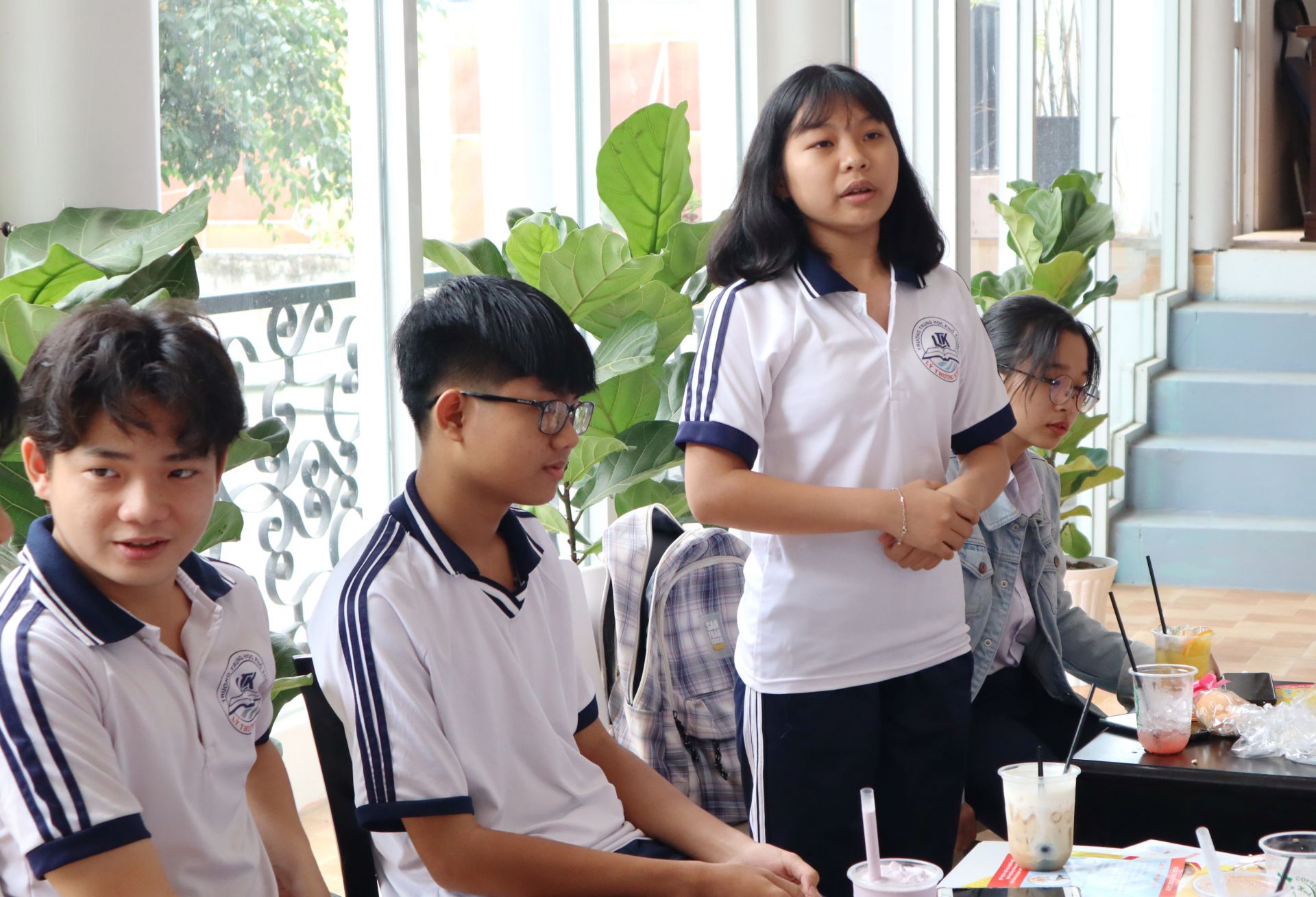 Một học sinh đang đặt câu hỏi về vấn đề hương nghiệp.
