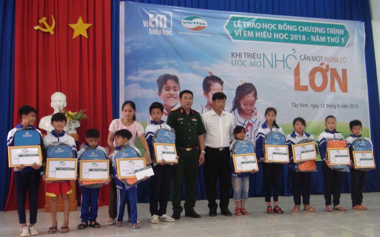 Năm 2018 là năm thứ 5 Viettel Tây Ninh tiếp tục triển khai thực hiện chương trình, kịp thời hỗ trợ cho các em học sinh nghèo, vượt khó, học giỏi trên địa bàn tỉnh có thêm điều kiện bước vào năm học mới.