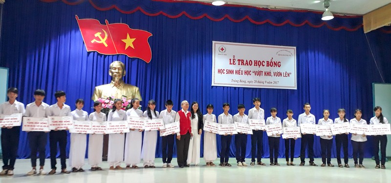 Mới đây, Hội Chữ thập đỏ Tây Ninh phối hợp với nhà tài trợ tổ chức trao học bổng cho học sinh nghèo vượt khó, hiếu học huyện Trảng Bàng.