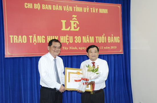 Chiều 13.11, Chi bộ Ban Dân vận Tỉnh ủy tổ chức lễ trao Huy hiệu 30 năm tuổi Đảng cho đảng viên Nguyễn Văn Hợp- Ủy viên BTV Tỉnh ủy, Trưởng ban Dân vận Tỉnh ủy, Chủ tịch UB.MTTQVN tỉnh.