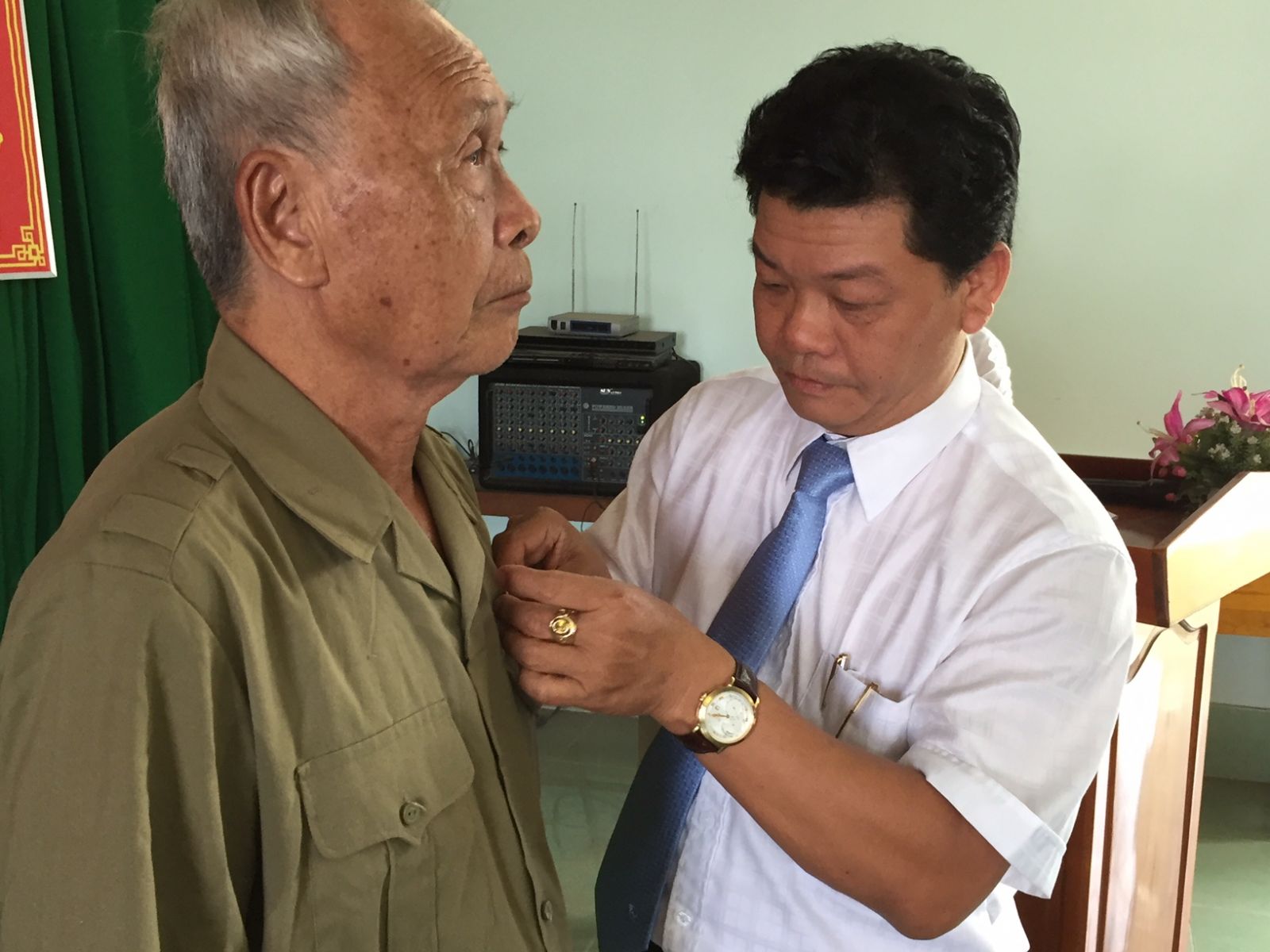 Chiều 9.4, ông Nguyễn Nam Hưng- Chủ tịch UBND huyện Hoà Thành đã đến dự và gắn huy hiệu 50 năm tuổi đảng cho đảng viên Nguyễn Văn Sáu.