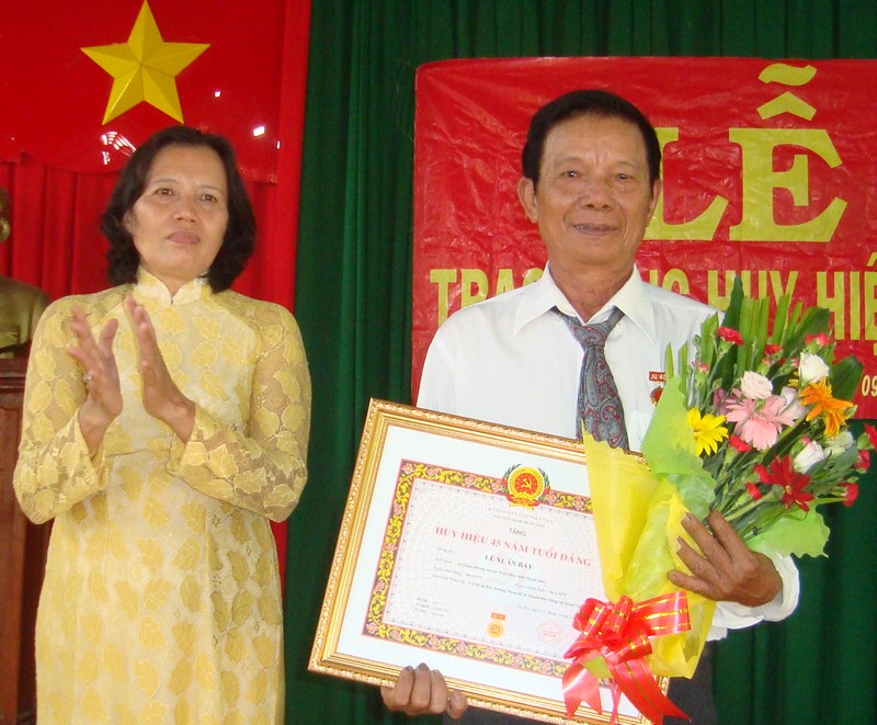 Huy hiệu 55 năm tuổi Đảng được trao cho các đảng viên Đỗ Văn Lý (sinh năm 1940, quê quán tỉnh Hải Dương) và Nguyễn Văn Súy (sinh năm 1934, quê quán Hà Tĩnh); 2 đảng viên Lê Xuân Phán (sinh năm 1934, quê quán Thanh Hóa) và Phan Văn Tây (sinh năm 1949, quê quán Tiền Giang); các đảng viên Trần Văn Đẹp (sinh năm 1947, quê quán Châu Thành, Tây Ninh) và Hoàng Văn Hoạt (sinh năm 1942, quê quán tỉnh hải Dương) được tặng huy hiệu 45 và 40 năm tuổi Đảng.