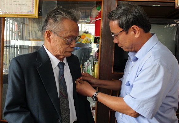 Vì lý do sức khỏe của đảng viên, ông Võ Thiện Trí- Trưởng ban Tổ chức Tỉnh ủy Tây Ninh và ông Trương Văn Nhạn- Chủ tịch HĐND huyện Châu thành đã đến nhà riêng để trao huy hiệu 70 năm tuổi Đảng cho ông Lê Văn Huệ.