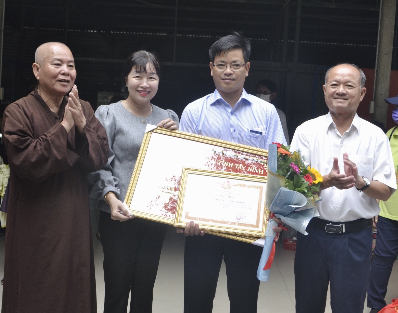 Thượng toạ Thích Định Tánh- Trụ trì chùa Cẩm Phong, Giám đốc cơ sở bảo trợ Minh Đức gửi lời cảm ơn đến ban lãnh đạo Sở LĐ-TB&XH và Công ty TNHH XNK Gia Lâm Tây Ninh.