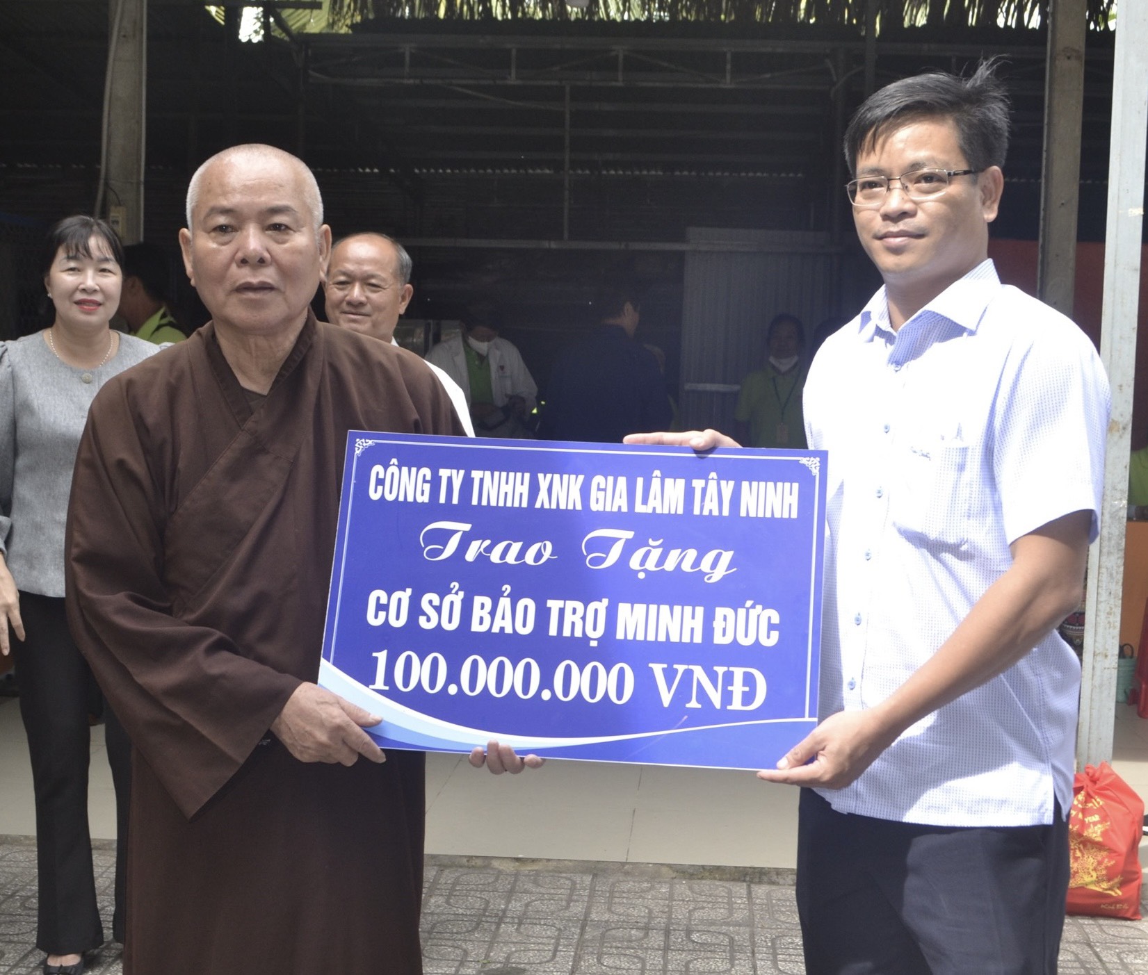 Sở LĐ-TB&XH trao tặng 81 phần bánh kẹo cho các em thiếu nhi; Công ty TNHH XNK Gia Lâm Tây Ninh trao tặng 100 triệu đồng hỗ trợ chi phí nuôi dưỡng trẻ em có hoàn cảnh khó khăn tại cơ sở.