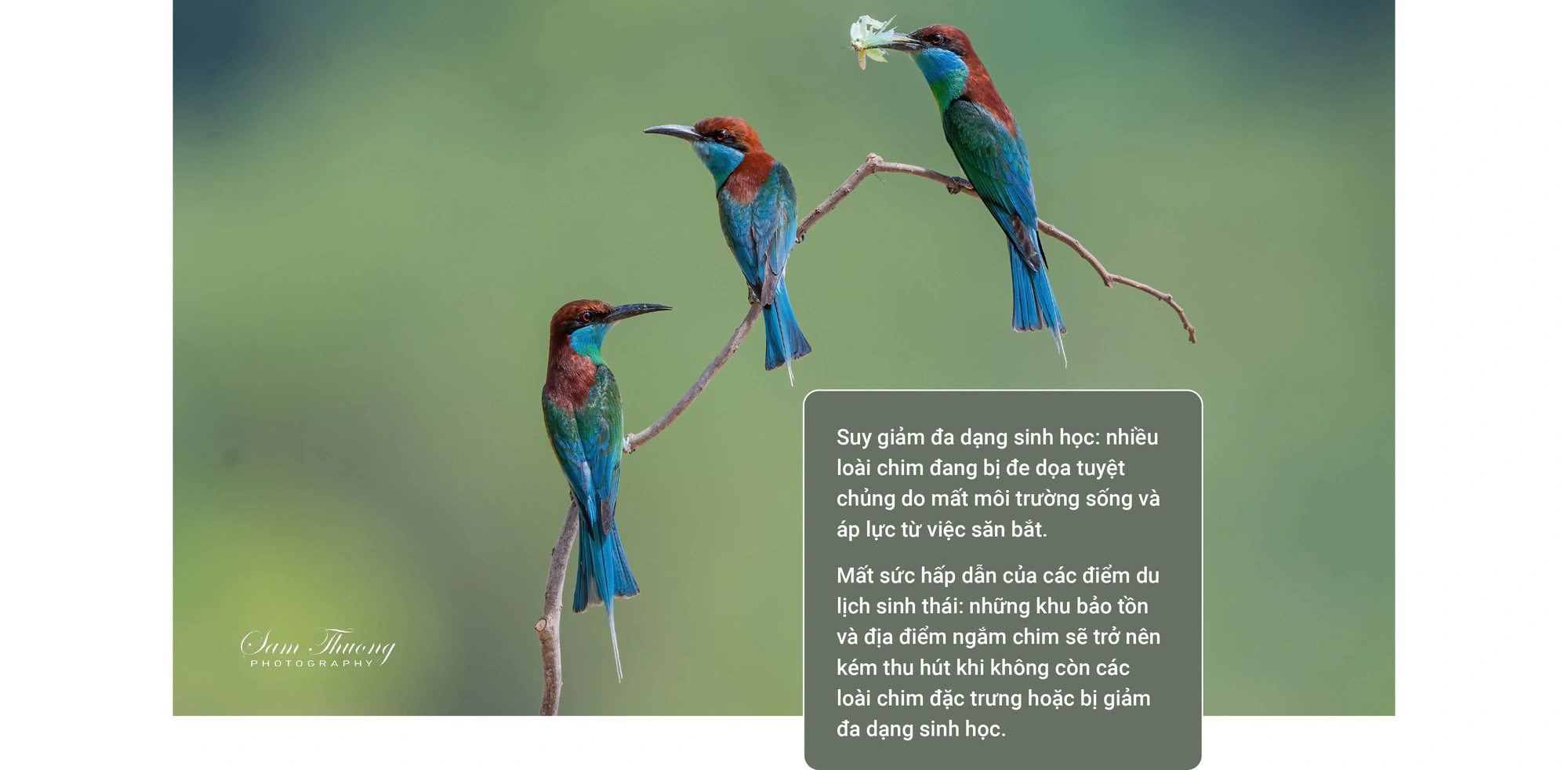 Đặc biệt, chim hút mật - loài đóng vai trò quan trọng trong việc thụ phấn - đang bị bắt về làm cảnh, khiến hệ sinh thái bị ảnh hưởng nghiêm trọng. Không còn những con chim hút mật bay lượn, nhiều loại cây cần thụ phấn tự nhiên đã và sẽ còn bị suy giảm về số lượng, dẫn đến mất cân bằng hệ sinh thái.