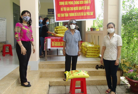 Hội LHPN Thị xã Hoà Thành và mạnh thường quân trao tặng gạo cho người dân.