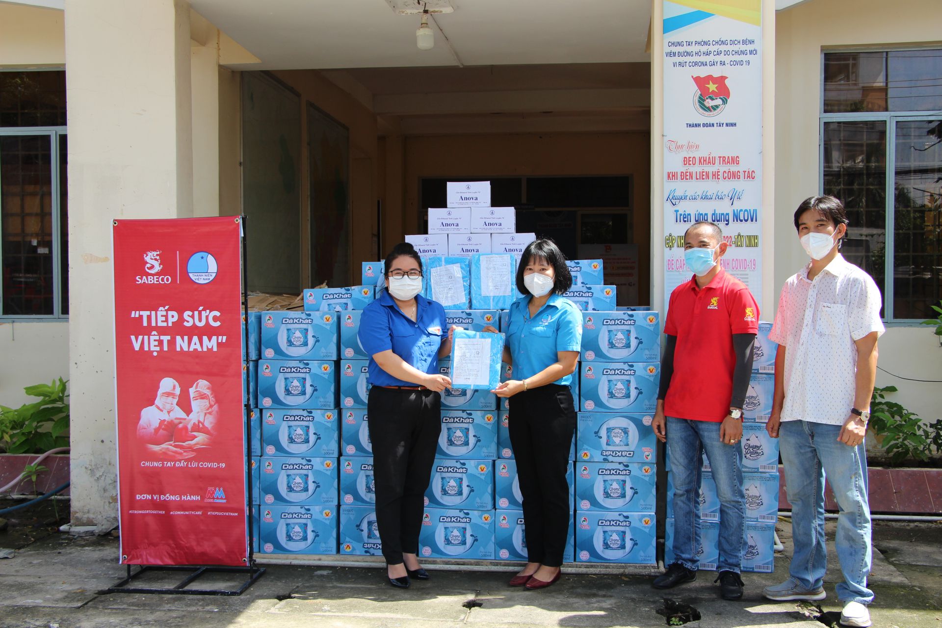 Trong đợt này, đoàn đã đến và trao tặng 1.200 bộ quần áo bảo hộ, 300 thùng nước suối và 600 chai nước sát khuẩn tay cho Thành đoàn Tây Ninh, Huyện đoàn Châu Thành và Thị đoàn Hòa Thành. Các vật tư y tế sẽ được các đơn vị gửi đến các chốt phòng, chống dịch Covid-19 trên địa bàn.