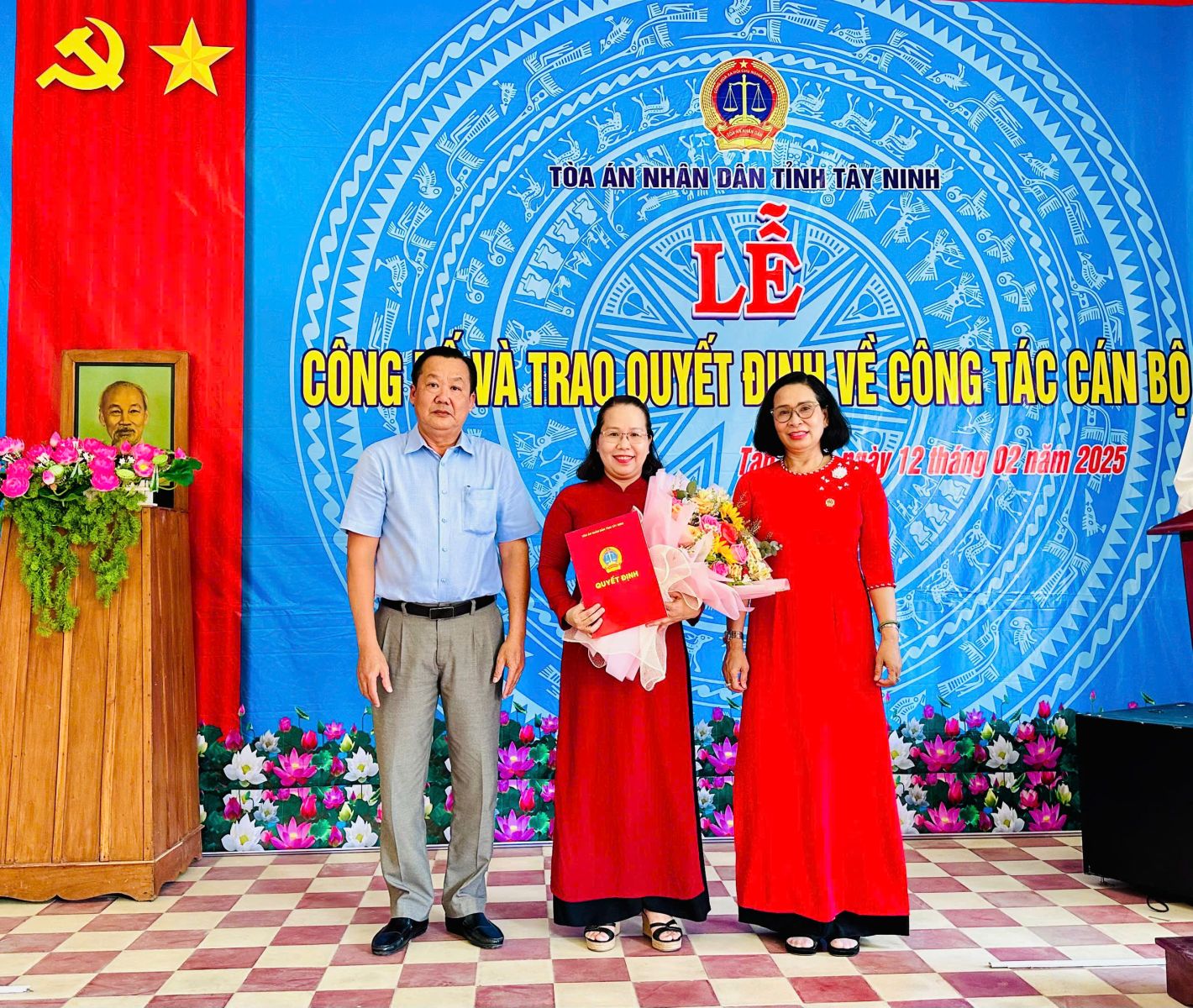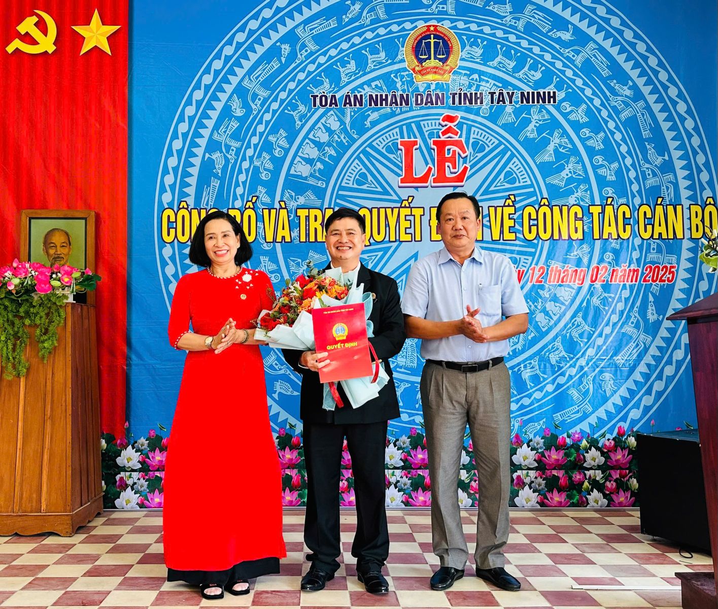 Hội nghị cũng công bố quyết định của Chánh án TAND tối cao về việc bổ nhiệm ông Đặng Ngọc An- Phó Chánh án TAND huyện Tân Biên giữ chức vụ Chánh án TAND huyện Tân Biên, nhiệm kỳ 5 năm kể từ ngày 16.2.2025.
