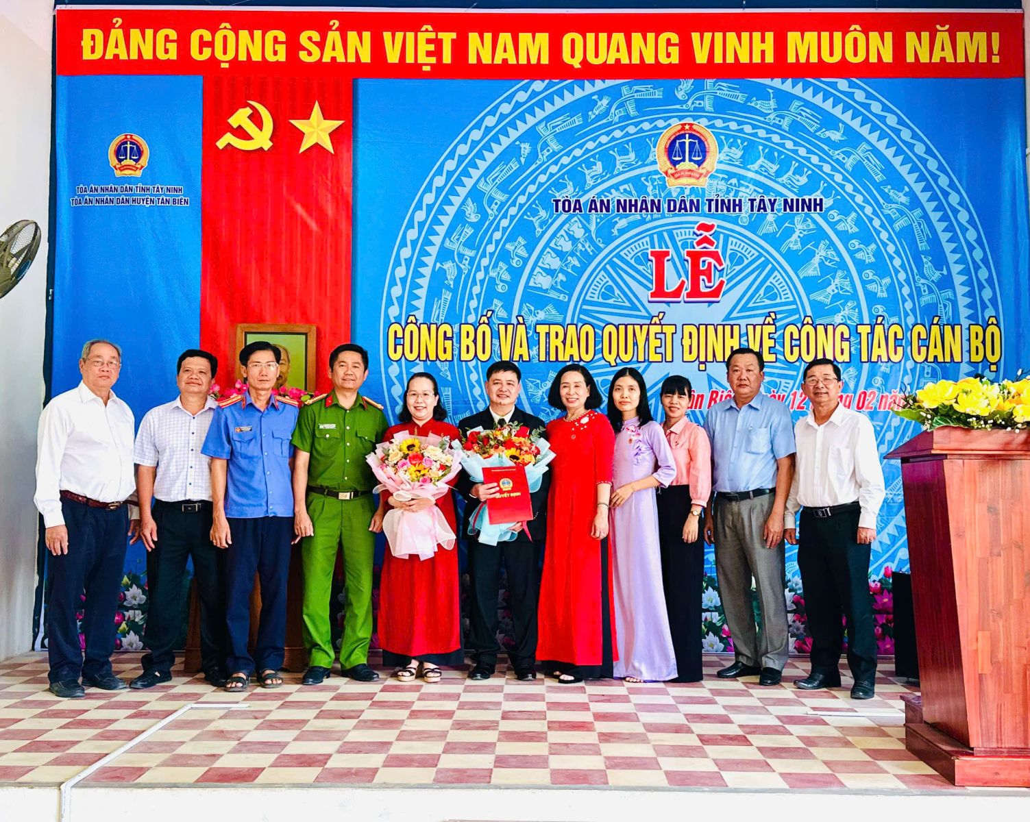 Chiều 12.2, Toà án Nhân dân (TAND) huyện Tân Biên tổ chức lễ công bố và trao quyết định bổ nhiệm chức vụ Chánh án TAND huyện. Đến dự có bà Nguyễn Thị Tuyết Vân- Chánh án TAND tỉnh Tây Ninh.