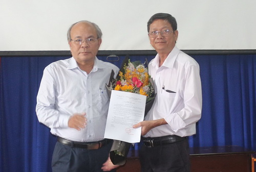 BS. Hoa Công Hậu- Giám đốc Sở Y tế chúc mừng BS.Biện Văn Tư được bổ nhiệm, mong rằng ở cương vị mới, đồng chí luôn hoàn thành tốt mọi nhiệm vụ được giao, cùng tập thể Trung tâm Kiểm soát bệnh tật làm tốt hơn nữa công tác bảo vệ và chăm sóc sức khỏe nhân dân.