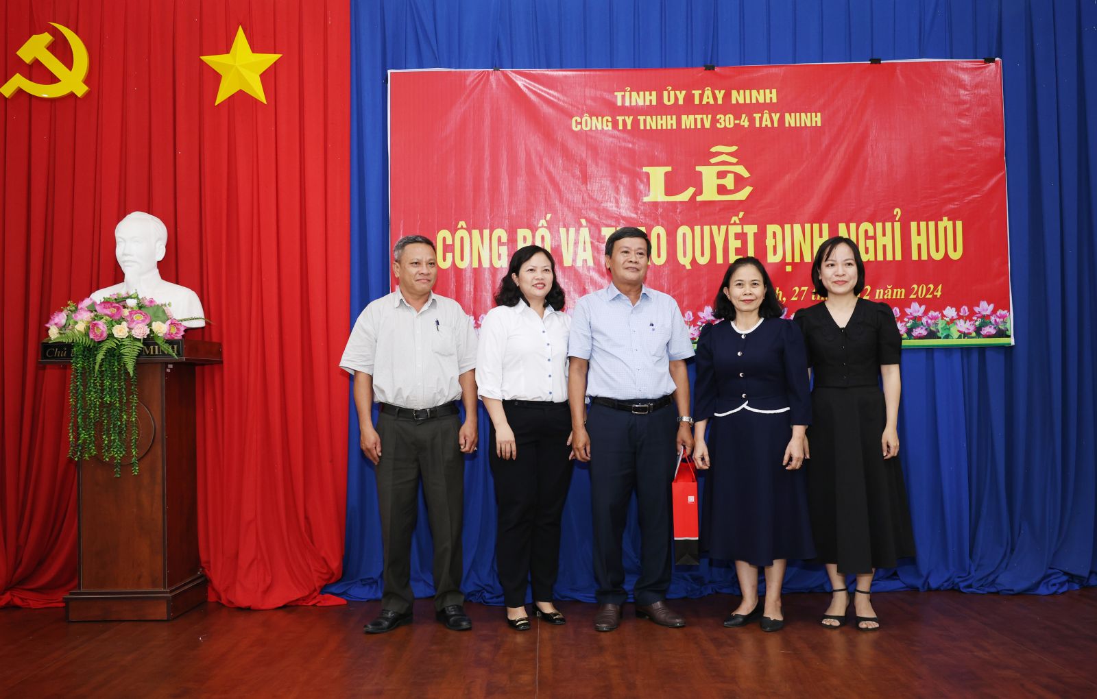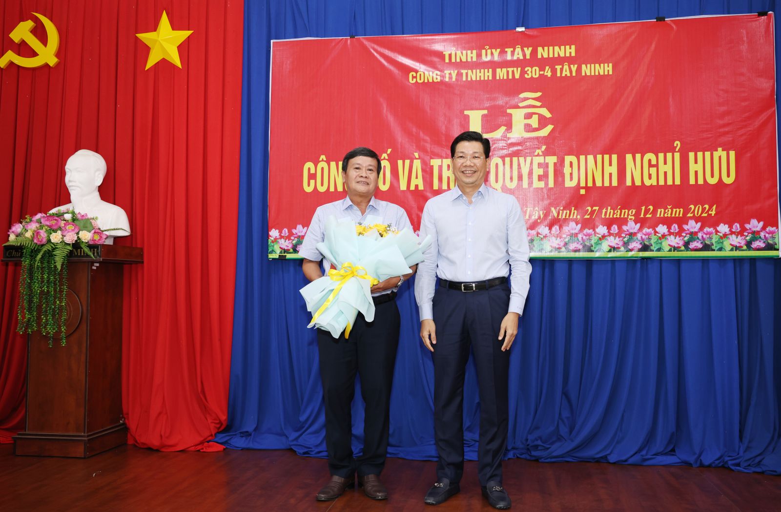 Tại Hội nghị, Phó Bí thư Tỉnh uỷ Nguyễn Mạnh Hùng đã trao quyết định của Ban Thường vụ Tỉnh uỷ cho ông Lê Thành Thử, Chủ tịch Hội đồng thành viên Công ty TNHH MTV 30-4 Tây Ninh (là doanh nghiệp Đảng trực thuộc Tỉnh uỷ) được nghỉ hưu để hưởng chế độ bảo hiểm xã hội kể từ ngày 1.1.2025.