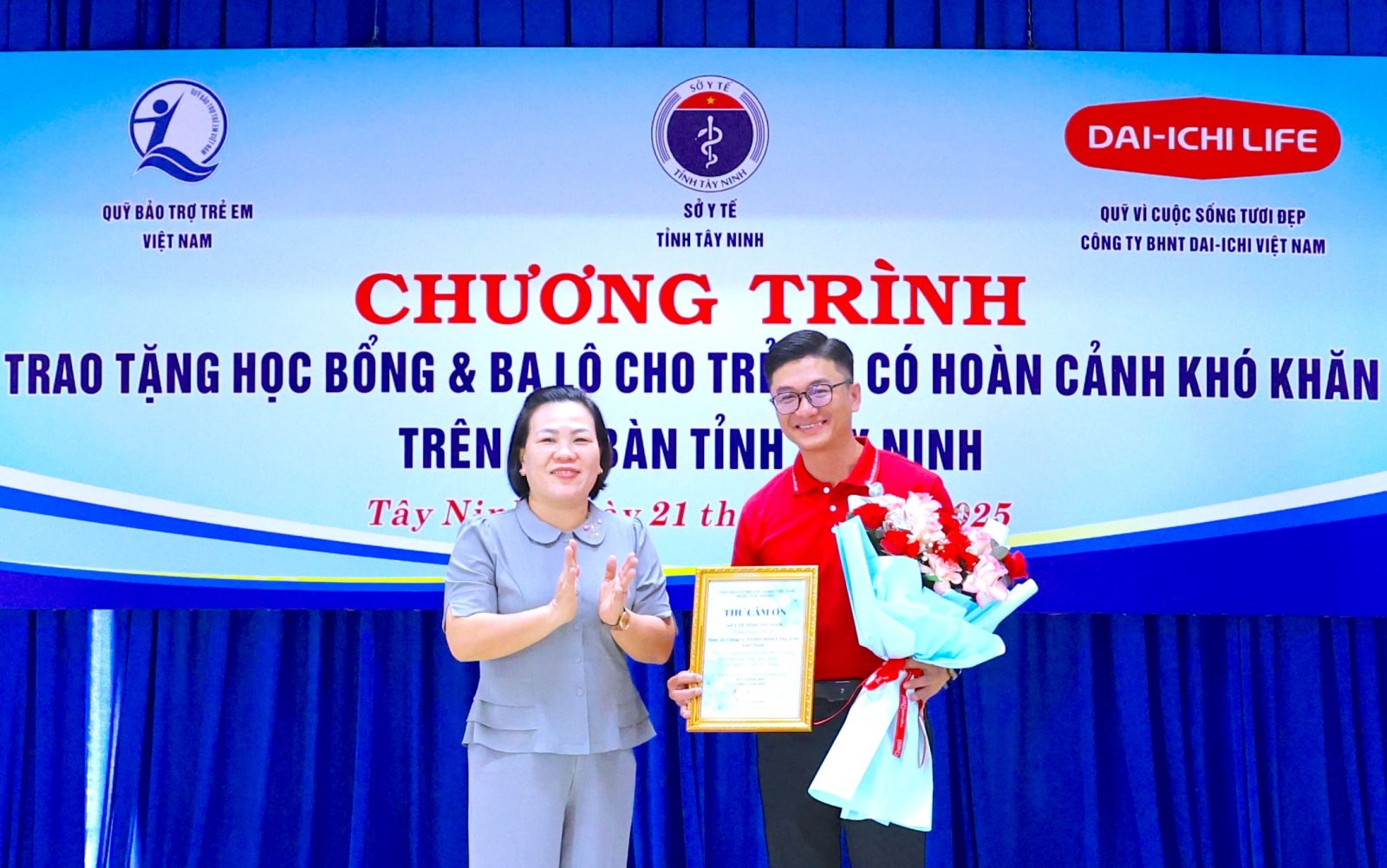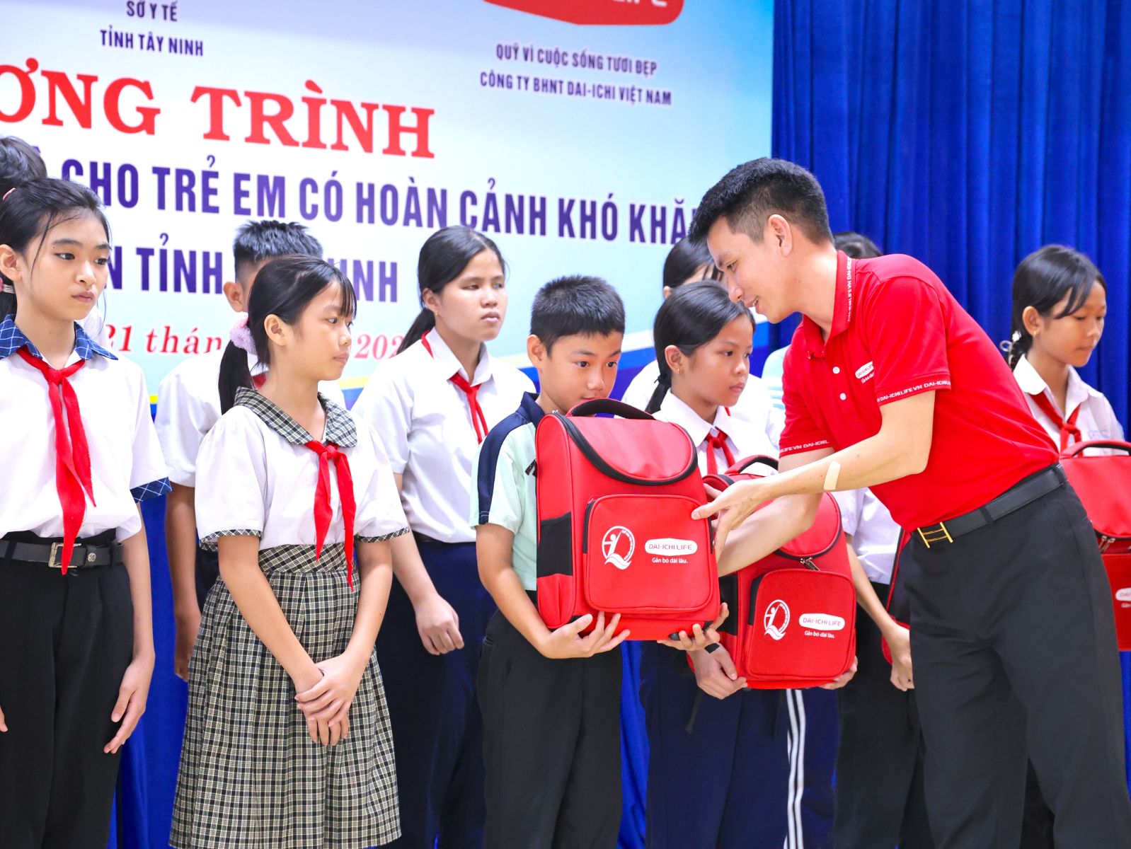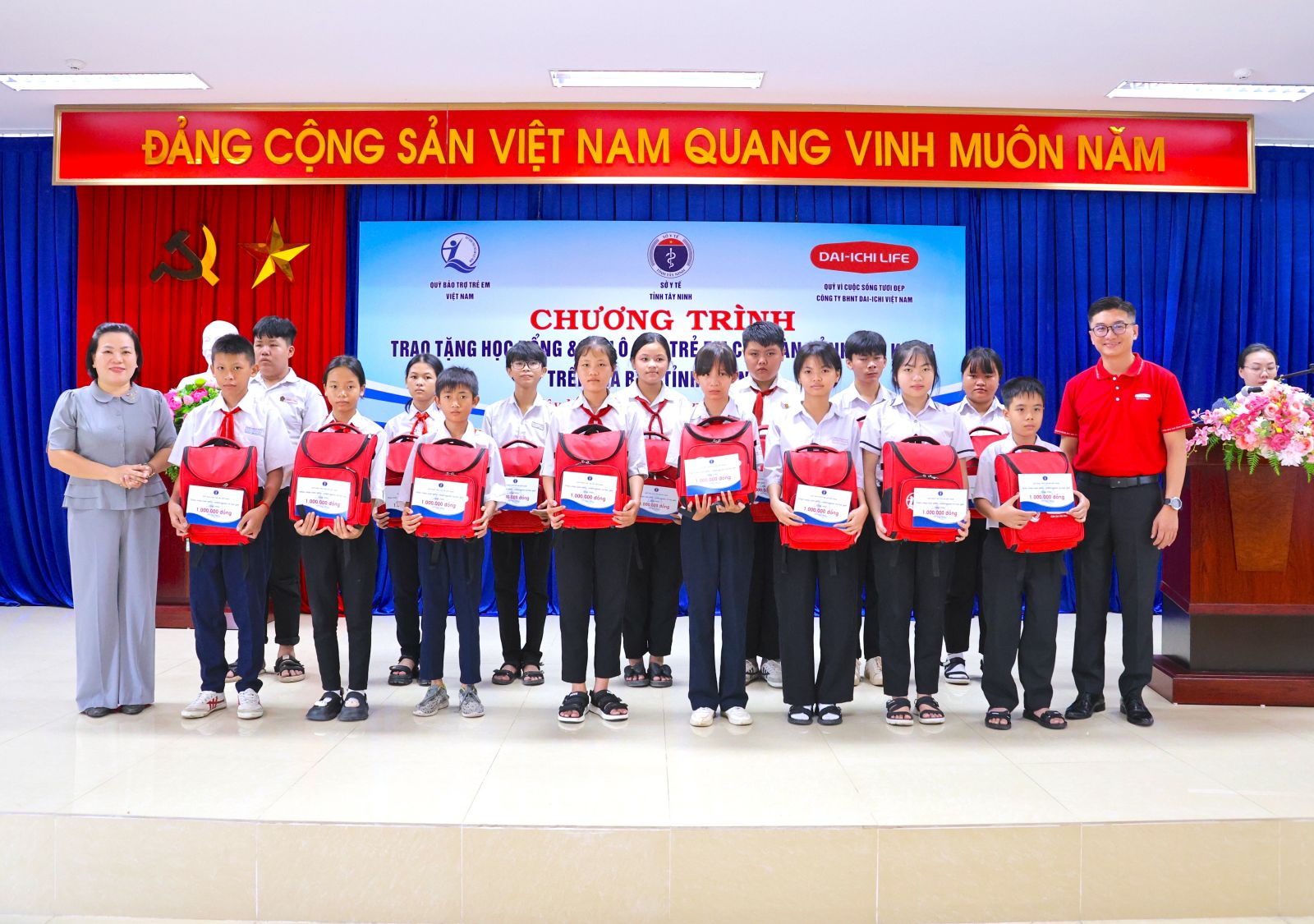 Tại buổi lễ, lãnh đạo Sở Y tế và Công ty TNHH Bảo hiểm Nhân thọ Dai-Ichi Việt Nam trao 75 suất học bổng, mỗi suất trị giá 1 triệu đồng và tặng balo cho 75 học sinh các trường tiểu học, THCS trên địa bàn tỉnh. Đây đều là học sinh có hoàn cảnh đặc biệt, hoàn cảnh khó khăn đã nỗ lực, cố gắng vươn lên học tập tốt. Các suất học bổng và quà do Quỹ Vì cuộc sống tươi đẹp Công ty TNHH Bảo hiểm Nhân thọ Dai-ichi Việt Nam tài trợ, thông qua Quỹ Bảo trợ trẻ em Việt Nam.